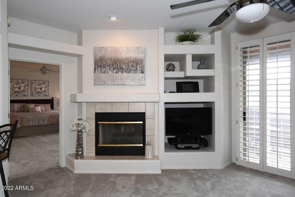 Welcome to resort-style living in the highly desirable Mirage Crossing Resort Casitas! This beautifully maintained second-floor condo offers the perfect blend of comfort,convenience,and Scottsdale lifestyle. Featuring an open and airy floor plan with abundant natural light,this unit boasts spacious living and dining areas that flow seamlessly to a private balcony--perfect for enjoying Arizona's stunning sunsets. Stay warm on those cool nights with a fireplace. The kitchen offers ample cabinetry and counter space,ideal for everyday living. The generously sized primary suite includes a large walk-in closet and en-suite bath for added privacy and comfort. A well-appointed second bedroom and additional full bath provide flexibility for guests or a roommate situation. The unit also has a third room that can be used as an office or additional space. Full-size laundry and assigned parking add to the convenience. Mirage Crossing offers resort-style amenities including a heated pool and spa,fitness center,clubhouse,and beautifully landscaped grounds. Ideally located near shopping,dining,golf,and easy access to the 101 freeway,this is Scottsdale living at its best.