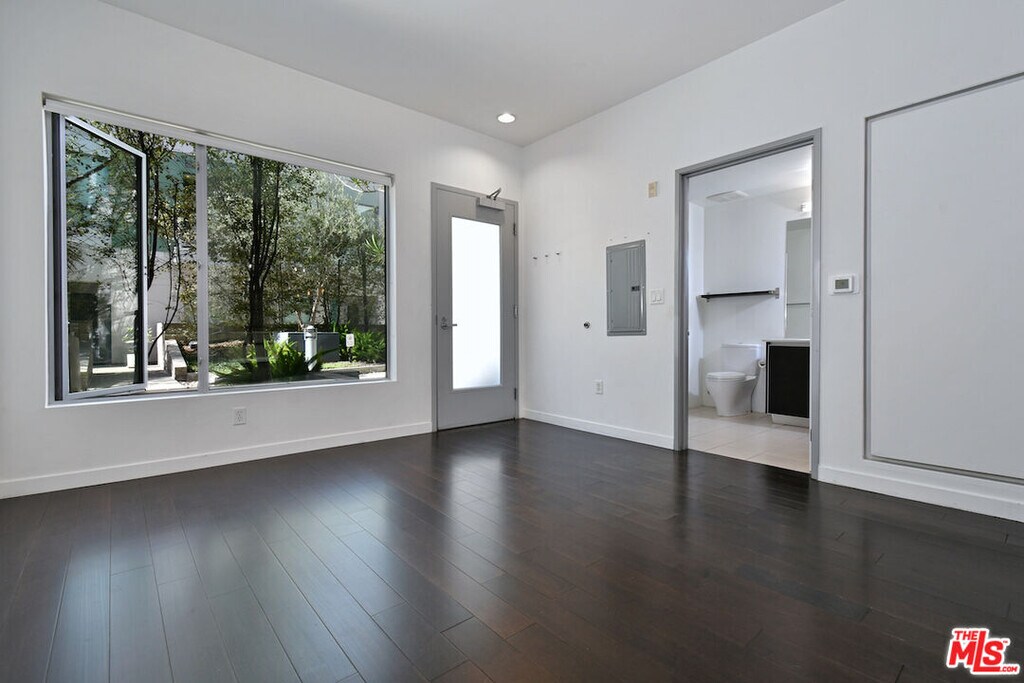 Introducing Modern Westside living at the T-Lofts! Enter through lushly landscaped walkways to this stunning two-story unfurnished end unit with abundant natural light and no neighbor on one side. The open floor plan boasts soaring ceilings, polished concrete floors, recessed lighting, and a bonus den ideal for an office. A chef's kitchen with stainless steel appliances, Caesarstone counters, and reverse osmosis system complements custom wood shelving under the staircase. An industrial roll-up door opens to a large patio for alfresco entertaining. Upstairs offers two bedrooms and baths, including a main suite with walk-in closet and spa-like bath. Two side-by-side parking spaces sit near the elevator. Community amenities include a hot tub, BBQ/picnic areas, fitness center, EV charging, and guest parking. Centrally located near Sawtelle dining and the Expo Line for easy access to Downtown LA and Santa Monica. MLS# 25599539