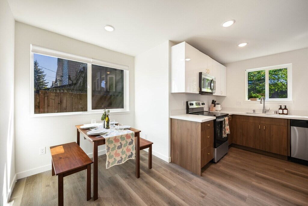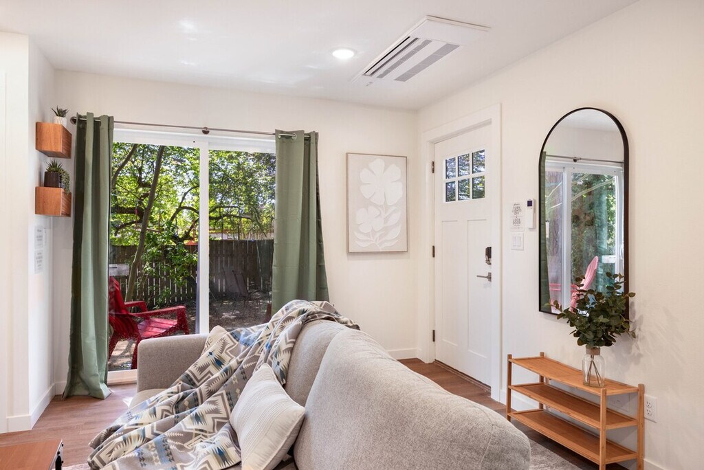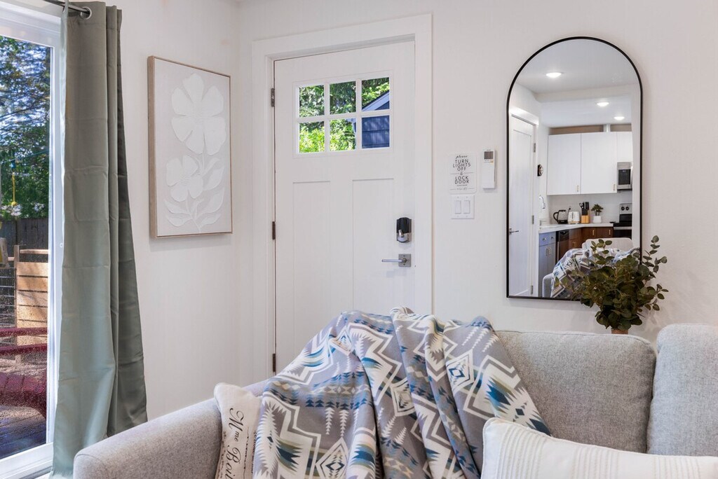 Feel at home in this thoughtfully designed retreat in Roosevelt, featuring AC throughout and bright living spaces. Enjoy the private patio, perfect for a comfortable stay in a vibrant neighborhood. This modern retreat features a fully stocked kitchen with appliances, cookware, silverware, serveware, ground coffee, and coffee pods. For added convenience, there is an in-unit washer and dryer. Enjoy year-round comfort with AC throughout the home, including the living room and both bedrooms. High-quality beds, mattresses, pillows, and linens ensure a restful night’s sleep. The private yard includes outdoor seating, a fire pit, and warm string lights, perfect for relaxing in the evening. Free street parking is readily available and easy to find. Minutes from Northgate Station for easy light rail access, this apartment is near the University of Washington, Woodland Park Zoo, South Lake Union, and Green Lake. Enjoy a quiet neighborhood feel while staying close to shops, cafés, and local favorites. This home is a detached ADU located in the backyard of the main house. It is completely private and exclusively yours during your stay, so you can relax and enjoy the space without interruption. Registration Number: STR-OPLI-24-000822 [SI]