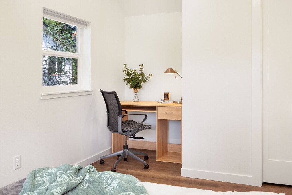 Feel at home in this cozy retreat located in quiet Roosevelt, just minutes from Northgate Station and Seattle's top attractions. This single-level home offers easy access with no stairs. This stylish home features a fully stocked kitchen with appliances, cookware, silverware, serveware, ground coffee, and coffee pods. The sun-filled living room is perfect for family gatherings, complete with a smart TV for movie nights and board games. Enjoy comfortable nights with high-quality beds, mattresses, pillows, and linens. An in-unit washer and dryer are available for your laundry needs. There is no assigned parking spot, but free street parking is readily available and easy to find. Located in a quiet part of Roosevelt, this home is minutes from Northgate Station, offering convenient light rail access around Seattle. Popular destinations including the University of Washington, Woodland Park Zoo, South Lake Union, and Green Lake are all a short drive away, making it easy to explore the city while enjoying a peaceful residential setting. The spacious front deck and a 6-ft fence surrounding the property offer privacy in a quiet, park-like setting. There is one A/C unit in the living room that provides both cooling and heating for the main space. The two bedrooms do not have built-in air conditioning, but each is equipped with tower fans, a wall-mounted electric heater, and a portable heater to help keep you comfortable year-round. This is a pet friendly home, but please refrain from allowing pets on furniture/linens including couches, throws, beds, pillows, and towels. Please do not leave pets unattended and please bring poop bags and pick up after your pets. Strictly no parties and events are allowed, quiet hours are between 10pm-8am, no smoking or vaping of any kind is allowed anywhere on the property including outdoor areas, no digital piracy is allowed, and no shoes are allowed in the home. A $500 fine per violation will be charged. Registration Number: STR-OPLI-24-000822 [SI]
