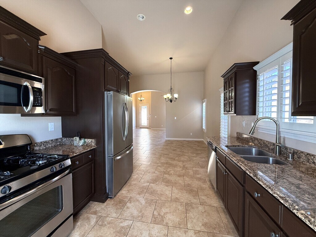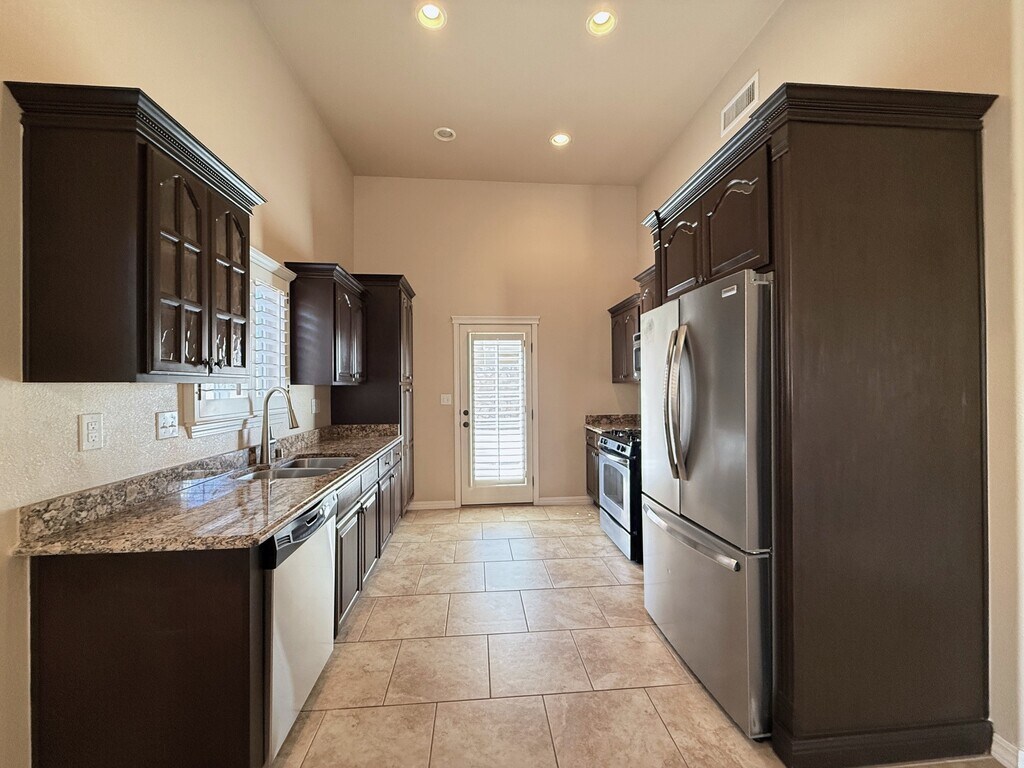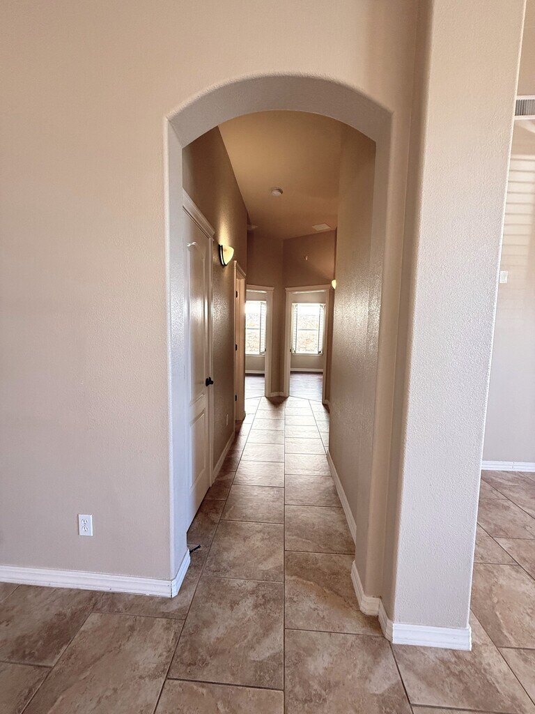 Very well cared for rental home located in northeast El Paso. This home is two blocks away from the large Sandstone Ranch city park with great walk-ways and a large children's playground. Also,located 15 miles (per Google maps) from the Fort Bliss,TX Consititution Gate. Welcome to a large living area with an inviting electric fireplace. The kitchen consists of all stainless steel appliances to include a dishwasher and a 3 drawer refrigerator. The primary room is zoned,and the additional two rooms are in a seperate hall next to a large full bathroom and utility room. Enjoy the low maintenance front a back yard landscaping with artificial turf and extended stamped cement slabs all around the house. All windows in this home have custom wood shutters. In the surrounding areas you will find major shopping,great restaurants,fast food restaurants and much more. Look no more,you just found your home sweet home.