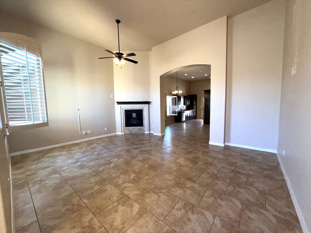 Very well cared for rental home located in northeast El Paso. This home is two blocks away from the large Sandstone Ranch city park with great walkways and a large children's playground. Also, located 15 miles (per Google maps) from the Fort Bliss, TX Constitution Gate. Welcome to a large living area with an inviting electric fireplace. The kitchen consists of all stainless-steel appliances to include a dishwasher and a 3-drawer refrigerator. The primary room is zoned, and the additional two rooms are in a separate hall next to a large full bathroom and utility room. Enjoy the low maintenance front a back yard landscaping with artificial turf and extended stamped cement slabs all around the house. All windows in this home have custom wood shutters. In the surrounding areas you will find major shopping, great restaurants, fast food restaurants and much more. Look no more, you just found your home sweet home.