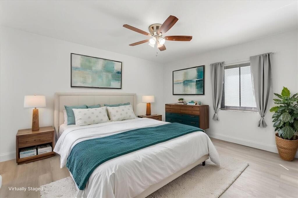 One or more photo(s) has been virtually staged. Experience easy living in this fully remodeled,first-floor corner residence,now ready for immediate move-in. The interior has been completely refreshed with new paint,stylish laminate flooring,and ceiling fans to keep the space cool and comfortable. The highlight of the home is the modern kitchen,which features sleek quartz countertops alongside brand-new cabinetry and stainless steel appliances. Storage is no issue thanks to a huge walk-in closet in the bedroom,while hurricane-impact sliding doors lead you to a private,screened-in patio. This pet-friendly unit also includes an in-unit washer and dryer and a dedicated parking spot right at your front door. Living here is stress-free,with high-speed internet,basic cable,water,and trash all included in the rent. You'll also have access to community pickleball and tennis courts. Perfectly located for commuters,you’re just 15 minutes from downtown St. Pete and 25 minutes from Tampa International Airport. MLS# TB8493461