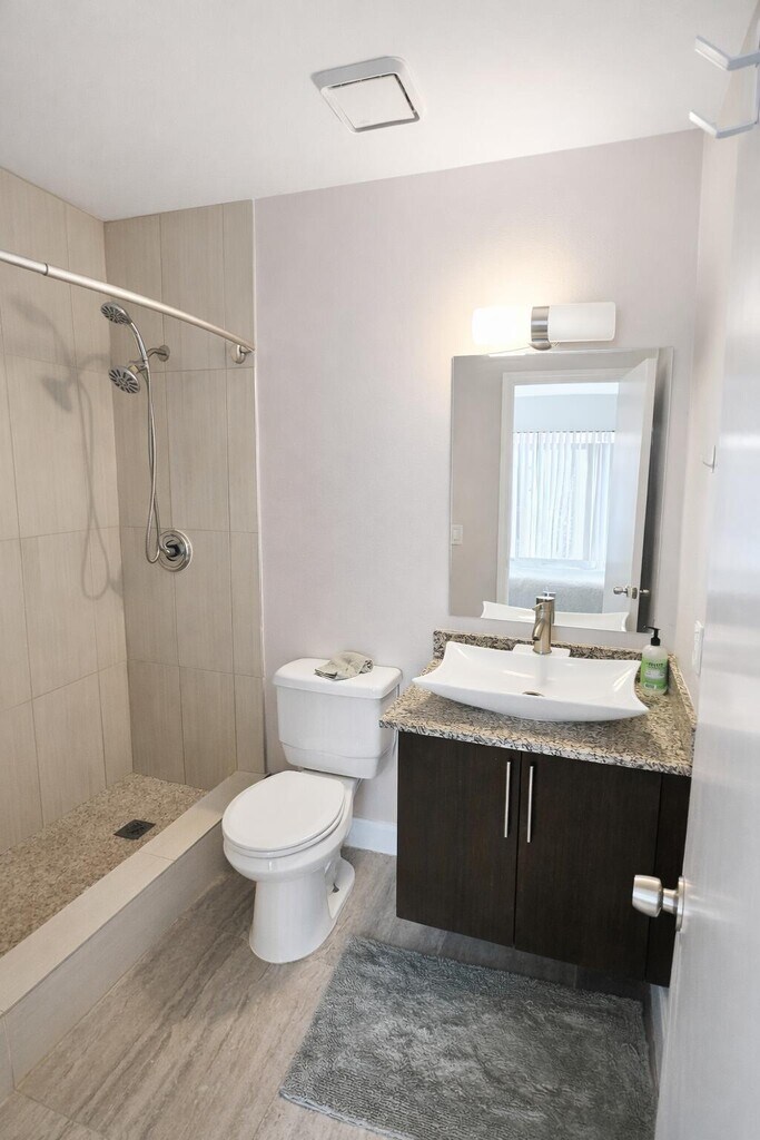 2-bedroom, 2.5-bath townhouse in Coral Springs FL 33065 - 720+CS home located in a desirable Coral Springs community. Features include private entry, tile flooring throughout the main living areas, and a bright kitchen with modern cabinetry and stainless steel appliances. Sliding glass doors provide access to a private patio. Both bedrooms are located upstairs and include en-suite bathrooms.
