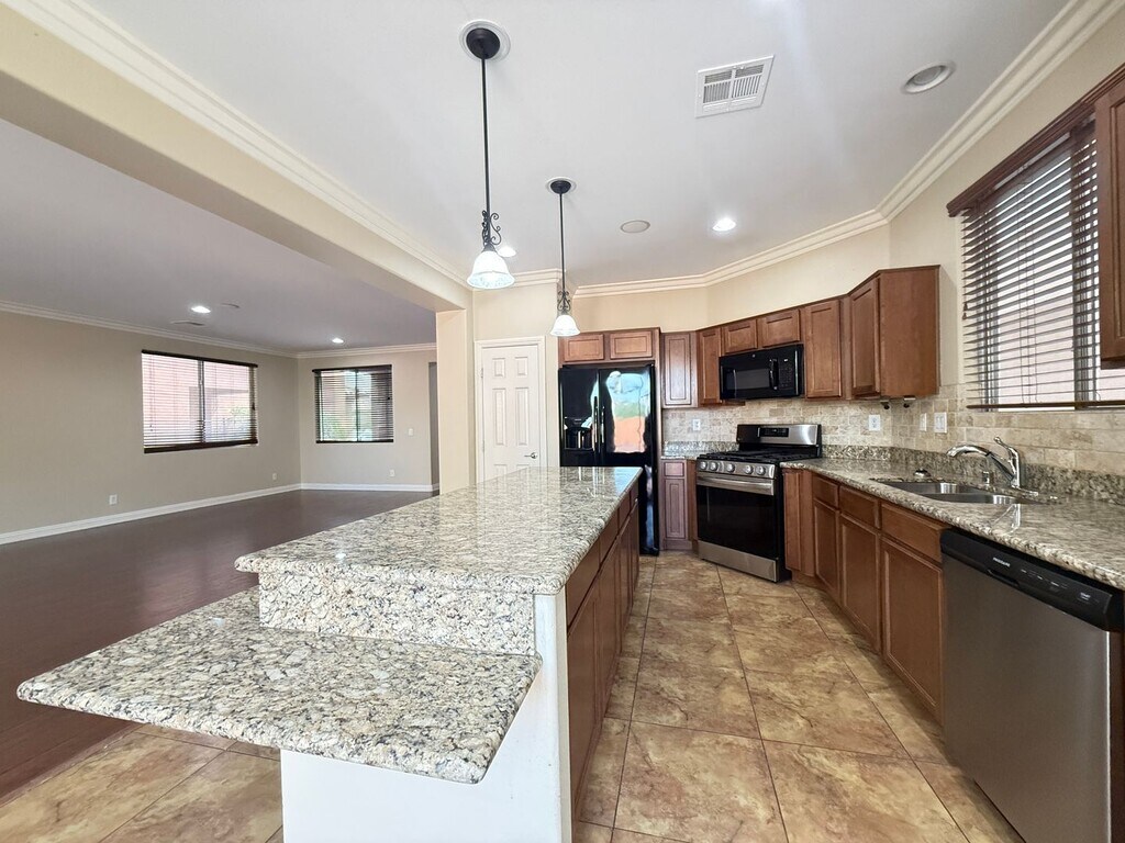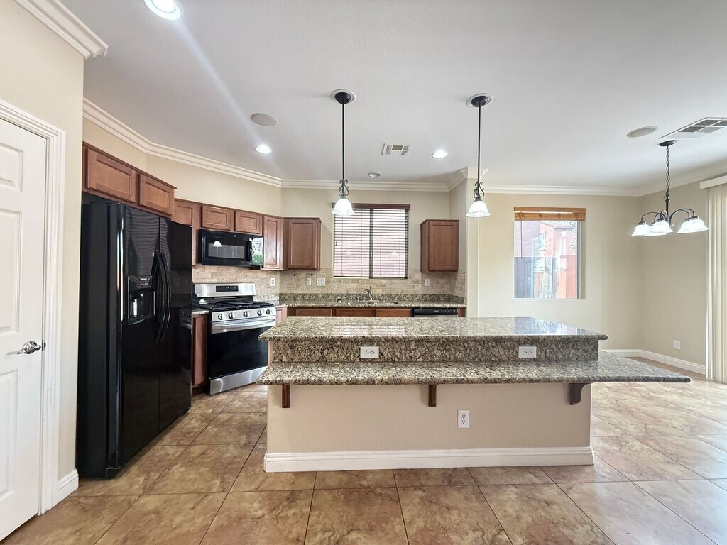 This spacious home in Rhodes Ranch features stunning mountain views and is situated in a beautiful 24-hour guard-gated golf course community. The neighborhood offers an array of amazing resort-style amenities, including a water park with slides, a pool, tennis courts, exercise facilities, a clubhouse, and much more. Inside the home, you'll find an open floor plan with a large living room and a kitchen equipped with granite countertops, an island, and a pantry. The master bedroom is generously sized and includes a fabulous bathroom with dual sinks, a separate shower and tub, and a walk-in closet. All bedrooms are fitted with ceiling fans for added comfort. The beautiful backyard, complete with pavers, is perfect for family gatherings and entertaining. Small pets will be considered. Disclaimer: --- By submitting this form, you authorize the property manager and AIgentProp to contact you via SMS, phone, or email about rental-related matters. Listing ID: 11c51f9a-5719-4f1d-9d04-de230fa34ef0