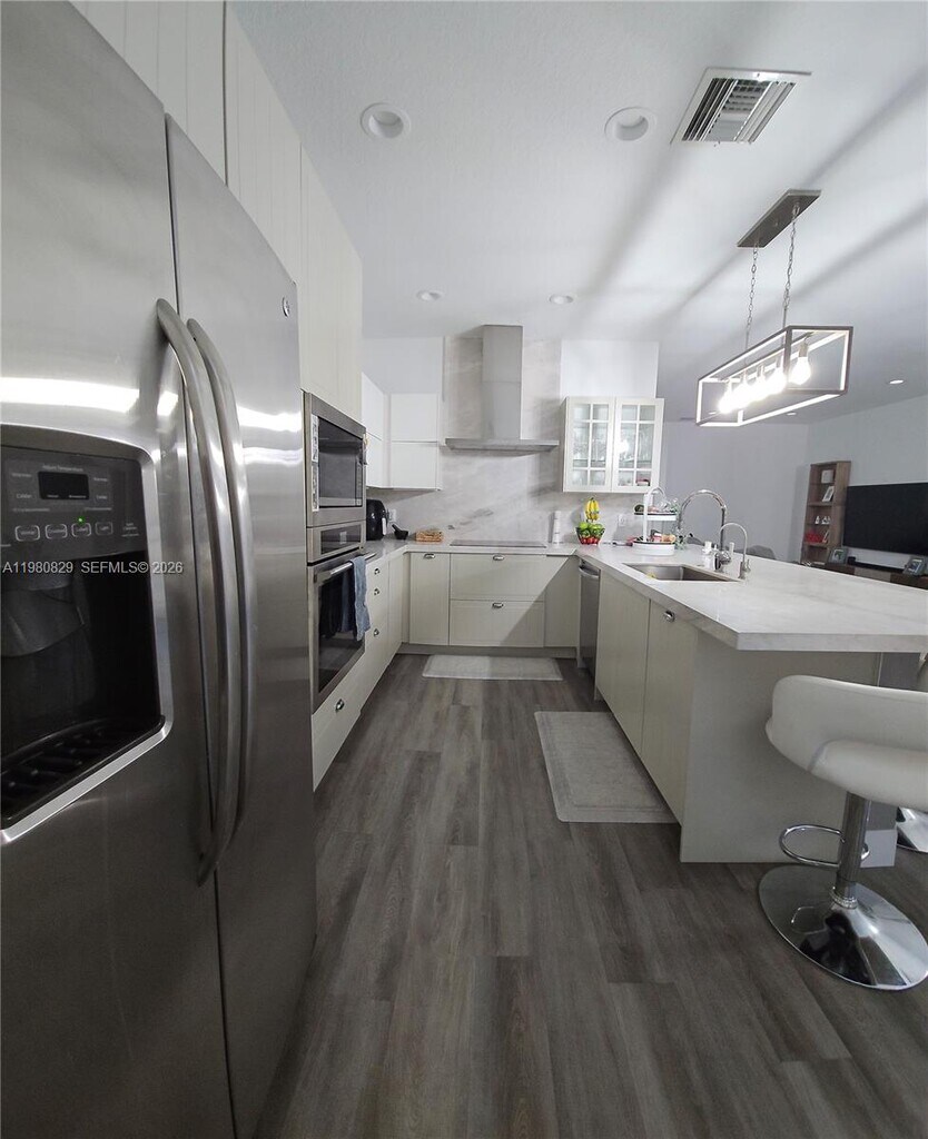 Unique & spacious townhome to fall in love with, where luxury, style & warmth meet in the heart of Doral. Fully remodeled corner 2-story in Saint Moritz @ Doral, redesigned to create a bright, open & expansive layout unlike others in the community. 4 bedrooms/ 2.5 bathrooms, all rooms counts with custom California-style closets. The primary suite offering two walk-in closets & a modern dual-sink bath. The huge kitchen is the centerpiece, showcasing an extended quartz island with seating for 6, luxury countertops, model-home style range hood, w/ abundant custom cabinetry with integrated LED lighting—perfect for cooking like a chef and entertaining. Spacious living, dining & amazing family room, include TV-ready setups, creating seamless comfort & functionality. The half bath features designer concrete-style wallpaper, a wood sink cabinet, and a modern illuminated mirror, all finished with impeccable taste. Include premium laminate flooring, elegant LED lighting, a high-end water filtration system for healthier living & security camera system for peace of mind. Enjoy a beautiful private patio with pergola, ideal for family gatherings and BBQs. Parking includes: 1-car garage, driveway for up to 3 vehicles + guest parking next to the home. Residents enjoy a community pool steps away & membership to Islands at Doral Club with resort-style amenities: Tennis courts, pool, gym, playground, Basketball, cabanas, classes & more. Prime location: A+ schools, shopping, dining & highways. Driving Directions: From FL-826 (Palmetto Expwy), exit NW 87 Ave (NW 74 St), head north to NW 116 St, turn left, then right on NW 87 Ln—property on the right at 11625. Broker Remarks: ID, Confidential Tenant Application or Rentspree application. Requirements: Proof of income & Credit score. Tenant application for HOA fee is $100 per adult and $150 processing fee per lease. Renter’s insurance is required. Call listing agent for appointments