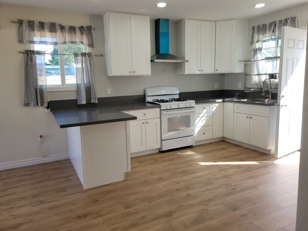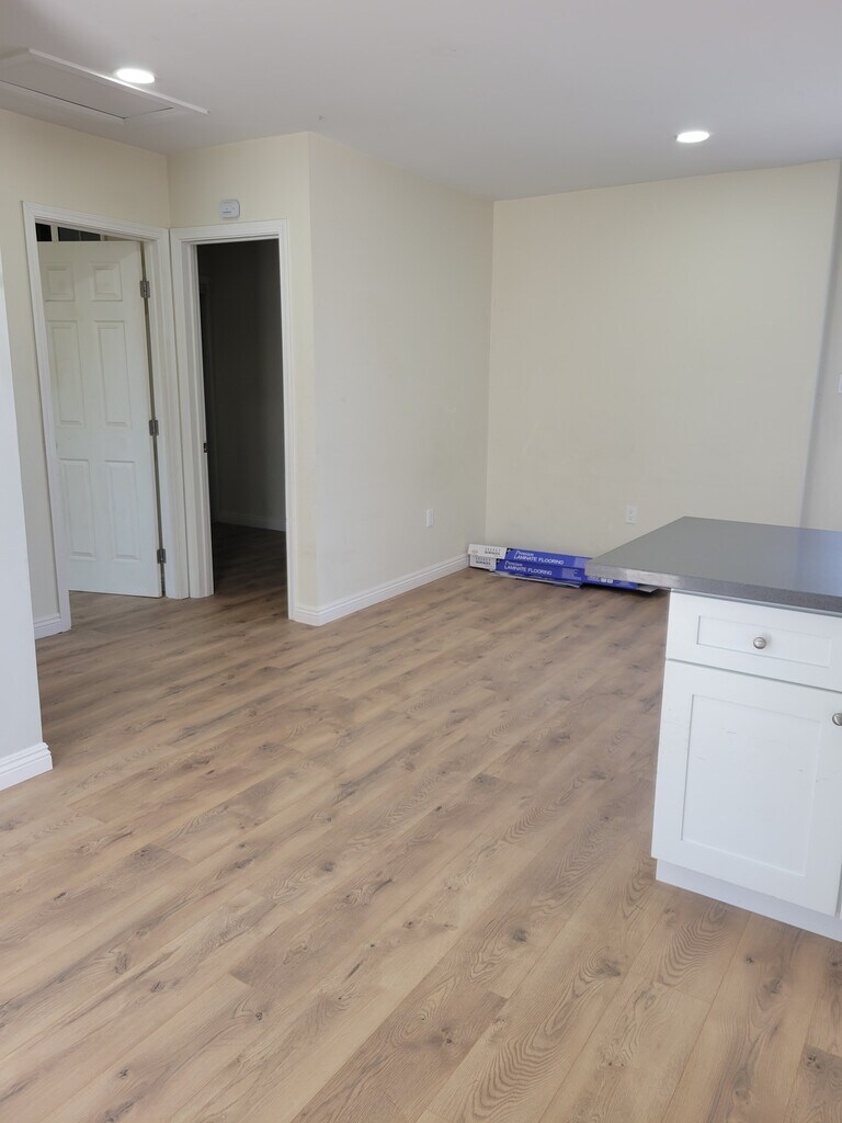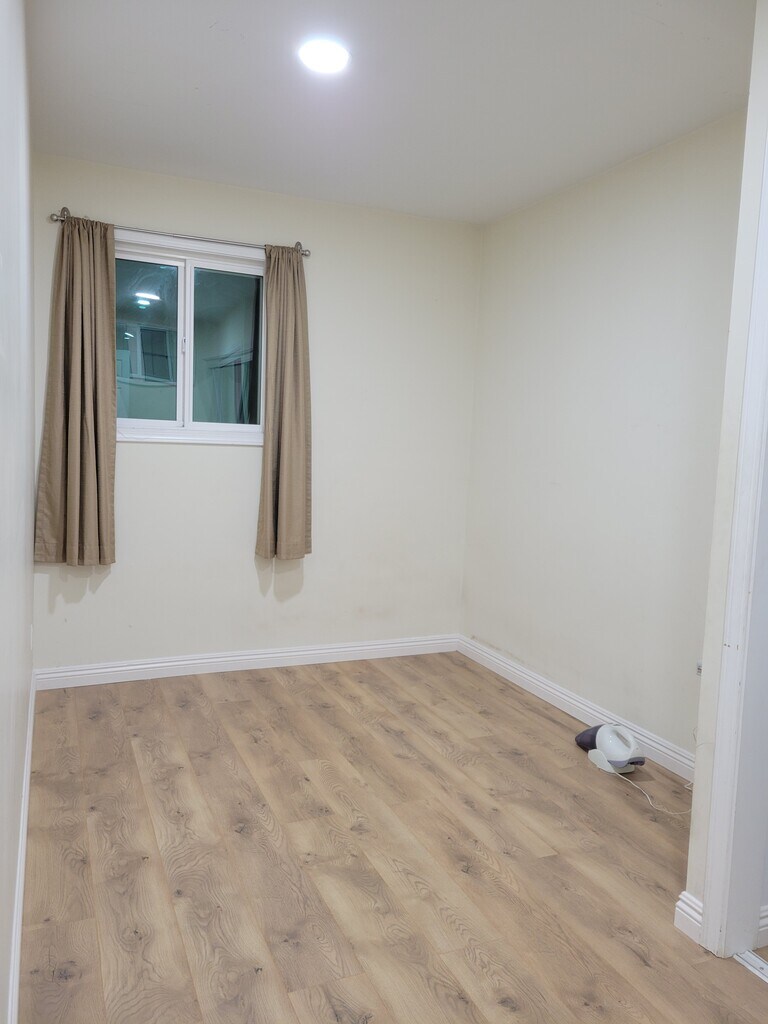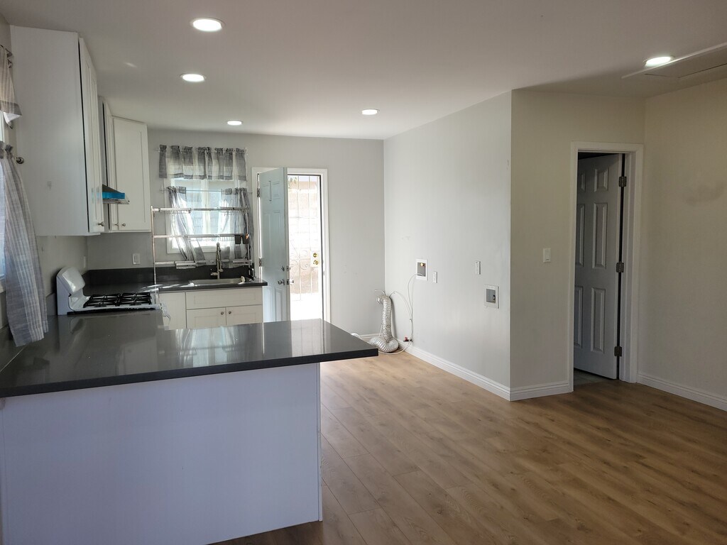 A 500sf guest house with 1 bedroom, 1 home office bonus room, a full shower bathroom is located in the back half of a large property, so it includes a private huge fence backyard of est. 500 sf concrete area and est. 1000 sf open yard. Its modern and remodeled about 3-4 yrs ago. Show only by appointment. The open full-size kitchen comes with lots of cabinets and a U-shaped stone countertop. Additional comfortable features includes new premium wood flooring, quiet & powerful 12000BTU split AC system for AC and heating, low-e dual-pane windows, complete recessed LED lights, gas range stove with exhaust fan, a large rectangle stainless-steel kitchen sink with garbage disposal, washer & dryer hookups, and space ready for refrigerator with ice line. No dishwasher. The full bathroom is fully tiled with marble. Both rooms have full size mirrored closet. It's ideal for 1-2 persons. The bonus room is perfect for home office, storage, or any functional uses. One parking is available by the front of the house. Street parking available for additional cars. Its location has easy access to Fwy 605 then northbound to 91 & 5 and southbound to 405 and 22. Close to lots of shopping & dining. Utilities not included.