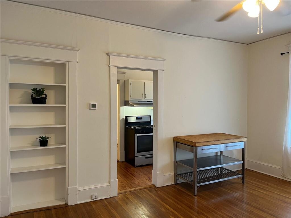Nestled in the heart of Virginia Highland,this 1 BR-1BA unit is on the main level of this updated 1925 Brick Quadraplex. Right around the corner from Piedmont Park,Ponce City Market,the Beltline and an abundance of bars,restaurant's and coffee houses.Inside features high ceilings,hardwood floors. neutral paint colors,classic base and crown molding and loads of charm. Open Living room,built in bookcases,right side area for small table or chairs or "home office". Plenty of light through the windows. Small galley kitchen,black and stainless refrigerator,and stove,double sink and white cabinets and hardwood floors. There is a decent size pantry/closet opposite the frig. The bedroom has small closet,wood floors,double windows and door that leads to the laundry/storage room,stackable one piece washer and dryer and access to the back and the parking area. Full bathroom with classic black/white tile floor's,tub/shower combo and natural light through the windows. There is a basement shared with other tenants to store items in,you have a door with access to it from your unit. One parking space in back for tenant,( unassigned) and guest park on the street. Tenants pay for gas,power,water and cable. Owner has specific criteria to meet which is min credit score of 675+,2.5 verifiable income,great rental history,will accept one cat,( no dogs ) iwth additional pet fees. No Smokers,one year lease. Sorry this is not in the Housing Voucher Program.