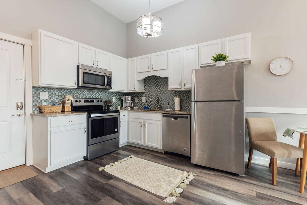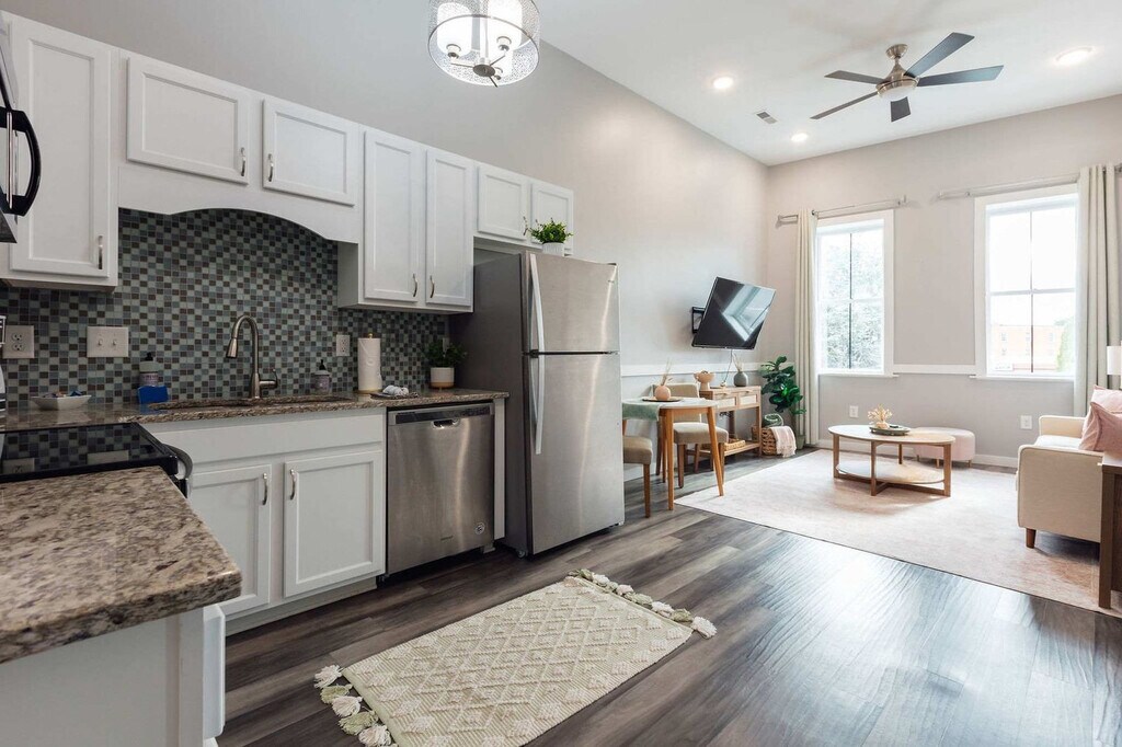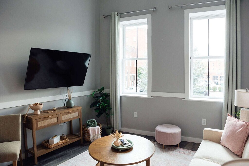 Welcome to your home-away-from-home in Johnson City! This newly renovated 1-bedroom, 1-bath apartment is located in the heart of the revitalized downtown area. This apartment offers a cozy atmosphere with a comfortable couch and a well-stocked kitchen for meal preparation. Bathrooms are stocked with towels and essential hygiene products. For your convenience, there is a free laundry room across the unit. Pets are welcome with a flat fee of $100. We allow a maximum of two pets, and all dogs must be under 50 lbs. Cats, birds, rodents, and amphibians are not allowed. There will be additional fines for undisclosed or unapproved pets. Located in a walkable area, this apartment is right above the Downtown Square Parking lot and across the street from restaurants, coffee shops, breweries, music venues, parks, and shopping. It's the perfect starting point to experience all that Johnson City has to offer. You might hear some noise from trains and nightlife, but we think it's just part of the vibe! Quiet hours are observed between 10 pm and 8 am. Smoking and vaping are not permitted inside the property, and a violation will incur a $200 per day fee. If your party receives a lease violation you will receive a $500 penalty. If there is evidence of pet hair found on furniture there will be an additional $75 deep clean fee. [SI]