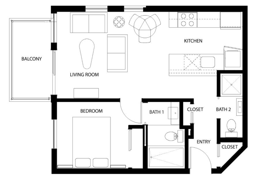 2 Beds, 2 Baths, 805 sq ftAvailable Jan 1, 2028Largest 2 BedroomThis is the largest 2 Bedroom at this PropertyModel Gallery
