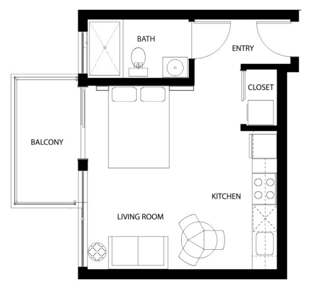 Studio, 1 Bath, 400 sq ftAvailable Jun 1Model Gallery