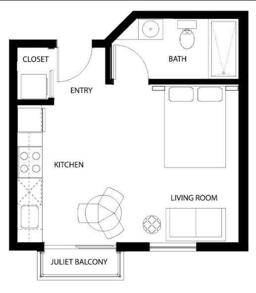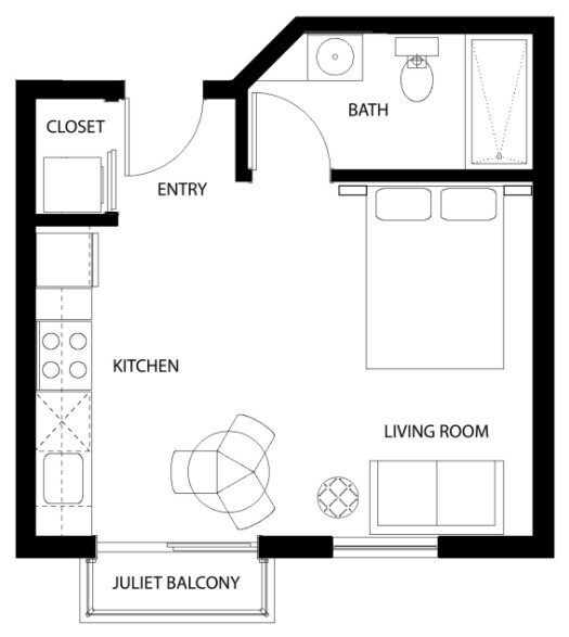 Studio, 1 Bath, 421 sq ftAvailable Jun 1Model Gallery