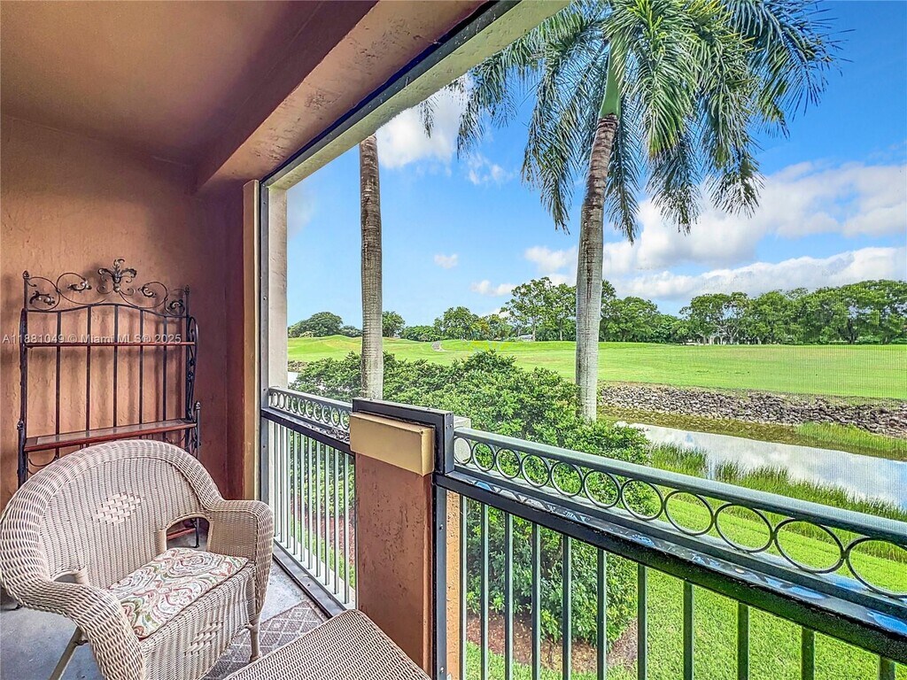 Clean and bright unit at St. Andrews Place. Tastefully furnished, turnkey condo with two master bedrooms with en suite bathrooms and walk in closets. Split floor plan. Conveniently located on a second floor and close to the beautiful resort style community pool, tennis, gym and club house. Enjoy a great view of the golf course from all windows or screened balcony. Great location for seasonal or off season visitors to enjoy Wellington and all equestrian events. All new appliances. $5,500/month seasonal lease, available off season at $3,000/month.