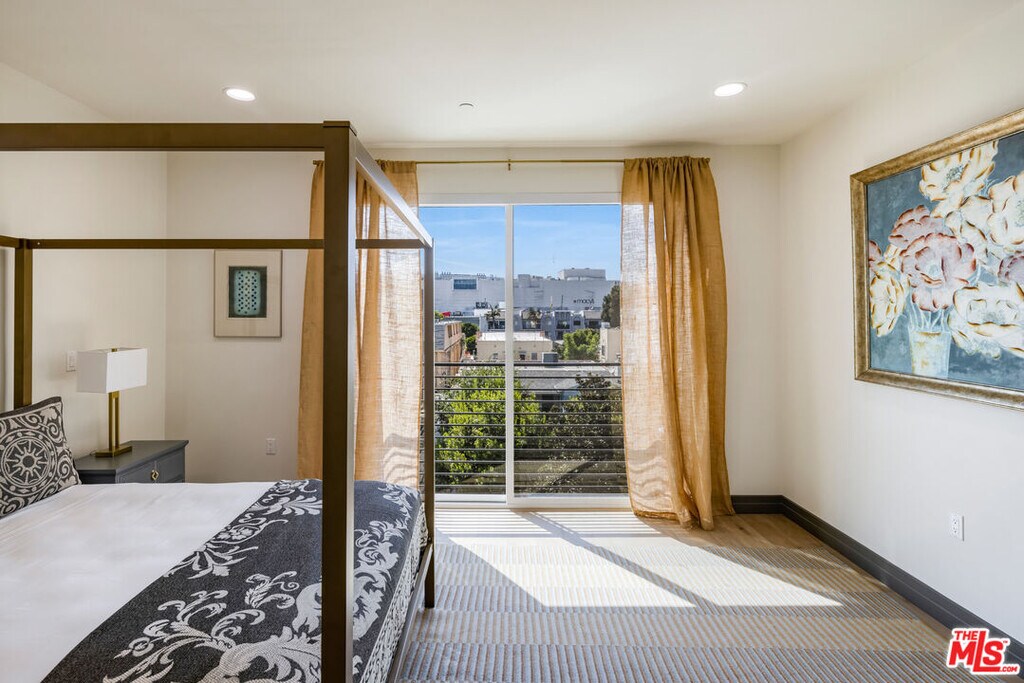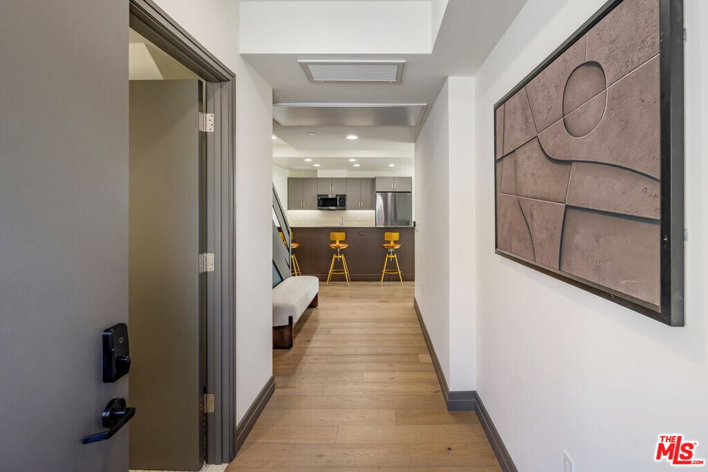 Welcome to Orlando 8, a brand-new 2025 built luxury residence in the heart of Los Angeles-offering the rare opportunity to live in a modern architectural masterpiece with townhouse-style living and a private rooftop deck. This unit spans three levels and features a thoughtfully designed layout with 2 bedrooms, 2.5 bathrooms, and approximately 1,428 square feet of light-filled living space. The main level showcases a bright open-concept living area with wide-plank wood floors, recessed lighting, and a sleek chef's kitchen with quartz countertops, stainless steel Samsung appliances, and bar seating for casual dining. Upstairs, you'll find two spacious bedrooms, each with its own full bathroom, designed for comfort and privacy. The primary suite includes a spa-like bath with dual vanities and craftsman tile finishes. Crowning the home is an incredible private rooftop deck with breathtaking panoramic views, a true entertainer's dream and an exceptionally rare feature in this neighborhood. Whether for lounging, dining, or hosting under the stars, this private rooftop space redefines outdoor living.Additional highlights include in-unit laundry, two secured parking spaces, central air and heat, and a private, direct-access stairway connecting all levels, giving the home the feel of a luxury townhouse. Perfectly situated near Melrose, Beverly Grove, and West Hollywood's best shopping, dining, and nightlife, this residence combines architectural design with an unbeatable location. Experience the very best of contemporary living at Orlando 8 where design, comfort, and lifestyle come together seamlessly. MLS# 25614607
