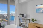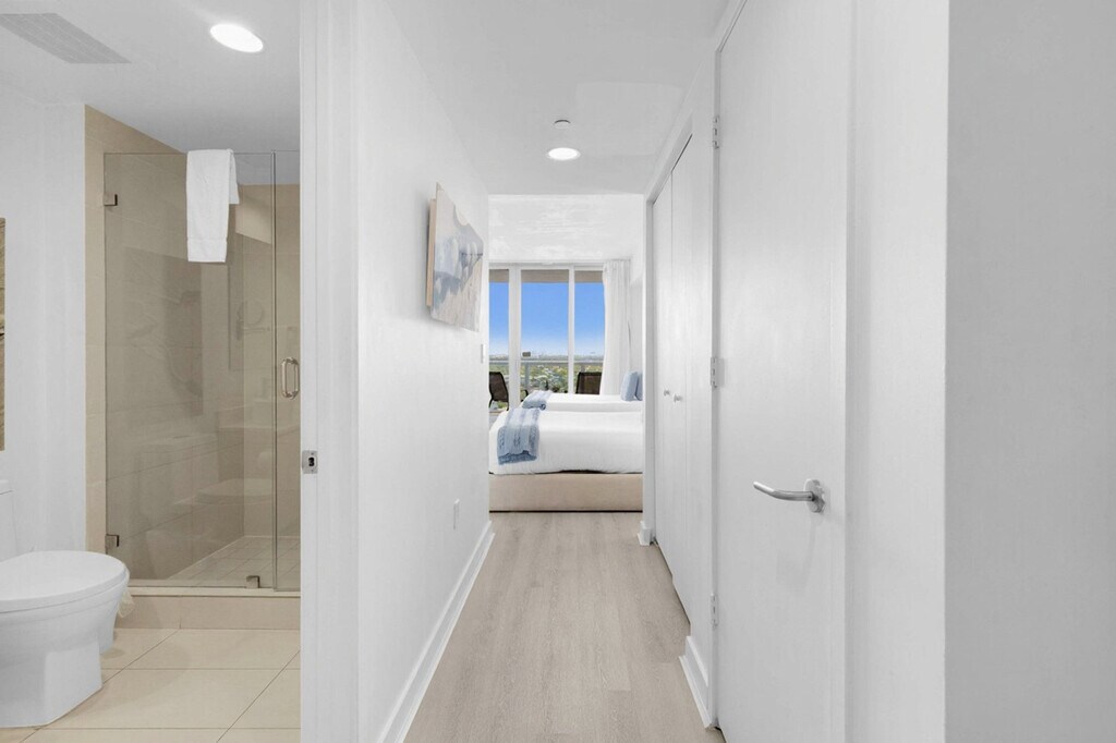The advertised rate of $4,210/month is the lowest available price, based on a 30 day(s) stay with a move-in date of August 24, 2026. Rates vary depending on the duration of stay, season, and other parameters. For exact pricing and additional pricing components, please visit our website and enter your desired move-in and move-out dates. The rate is applicable when billed upfront; it can be higher if billed in multiple payments. Feel at home in this spectacular upper-level apartment at Beachwalk Resort, designed by Pininfarina (Ferrari), with private stunning views. This spacious apartment features 2 bedrooms, 2 full baths, and a living room with a sofa. This unit has a balcony facing south, where you can enjoy direct views of the Intracoastal Waterway and the ocean. The fully equipped kitchen offers a stainless steel refrigerator/freezer, a glass stove, an integrated oven, a silent dishwasher, an integrated microwave, a stove, dishes, a coffee maker, a hairdryer, an electronic safe within the suite, an iron/ironing board, an in-suite washer/dryer, and TVs in each room. Wireless internet is included. You will also find a fitness center and a restaurant. Beach access is available with a free shuttle service to the beach (3 minutes away). A Pack 'N Play Crib is available upon request. Package handling is available for $5 per package plus applicable taxes, and packages may be collected from the package room between 9 AM and 5 PM. Valet parking is optional, with the following rates: 1 to 7 days: $28 per day per vehicle, plus taxes; 8 to 10 days: $25 per day per vehicle, plus taxes; 11 to 19 days: $250 per stay per vehicle, plus taxes; 20 to 30 days: $295 per stay per vehicle, plus taxes. This apartment is located at the Beachwalk Resort, at the corner of Hallandale Beach Boulevard and the Intracoastal Waterway, equidistant from Miami Beach to the south and Ft. Lauderdale to the north. Just beyond the resort, you'll find the Hollywood Beach boardwalk and miles of Blue Wave-designated beaches. The resort is surrounded by lots of restaurants and the world-famous Gulfstream Park, where you can dine, enjoy horse races, or try your luck at the casino five minutes away. To the west, you can visit the famous colossal Hard Rock Guitar Hotel & Casino. It is the perfect location to be if you are attending an event at Hard Rock Stadium. To the south, you can continue to the renowned Aventura Mall, or if you feel like going on an adventurous nightlife, you can head to South Beach to party all night. To the north, you can enjoy more shopping and restaurants in the city of Fort Lauderdale. This apartment is minutes from Fort Lauderdale Airport. For groceries, you will find a 24-hour Walmart right next door, a Publix Supermarket two minutes drive away, and you are very welcome to use Instacart for groceries to be delivered right to your apartment. Swimming is at your own risk, as there is no lifeguard on duty. Children must be supervised by a responsible adult at all times. Please keep all doors closed and the air conditioning on at all times to help prevent condensation and property damage. Quiet hours are from 10:00 PM to 07:00 AM. Please maintain low noise levels to ensure a relaxing stay for all guests. A $500 fine will be applied for any smoking violation. [SI]