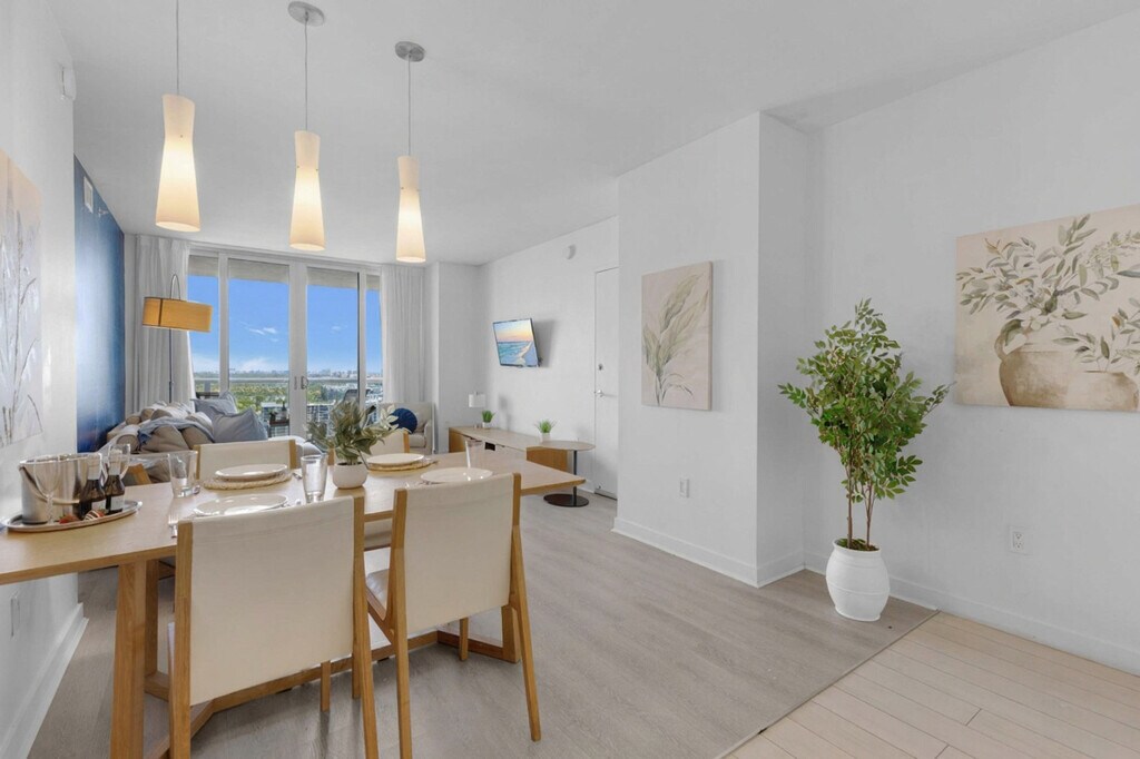 The advertised rate of $4,236/month is the lowest available price, based on a 30 day(s) stay with a move-in date of August 20, 2026. Rates vary depending on the duration of stay, season, and other parameters. For exact pricing and additional pricing components, please visit our website and enter your desired move-in and move-out dates. The rate is applicable when billed upfront; it can be higher if billed in multiple payments. Feel at home in this spectacular upper-level apartment at Beachwalk Resort, designed by Pininfarina (Ferrari), with private stunning views. This spacious apartment features 2 bedrooms and 2 full baths. This unit has a balcony facing south, where you can enjoy direct views of the Intracoastal Waterway and the ocean. The fully equipped kitchen offers a stainless steel refrigerator/freezer, a glass stove, an integrated oven, a silent dishwasher, an integrated microwave, a stove, dishes, a coffee maker, a hairdryer, an electronic safe within the suite, an iron/ironing board, an in-suite washer/dryer, and TVs in each room. You will also find a fitness center and beach access with a free shuttle service to the beach (3 minutes away). A Pack 'N Play Crib is available upon request. Package handling is available for $5 per package plus applicable taxes, and packages may be collected from the package room between 9 AM and 5 PM. Valet parking is available for 1 to 7 days at $28 per day per vehicle, plus taxes; 8 to 10 days at $25 per day per vehicle, plus taxes; 11 to 19 days at $250 per stay per vehicle, plus taxes; and 20 to 30 days at $295 per stay per vehicle, plus taxes. This apartment is located at the Beachwalk Resort, at the corner of Hallandale Beach Boulevard and the Intracoastal Waterway, equidistant from Miami Beach to the south and Ft. Lauderdale to the north. Just beyond the resort, you'll find the Hollywood Beach boardwalk and miles of Blue Wave-designated beaches. The resort is surrounded by lots of restaurants, and the world-famous Gulfstream Park, where you can dine, enjoy horse races, or try your luck at the casino five minutes away. To the west, you can visit the famous colossal Hard Rock Guitar Hotel & Casino. It is the perfect location to be if you are attending an event at Hard Rock Stadium. To the south, you can continue to the renowned Aventura Mall, or if you feel like going on an adventurous nightlife, you can head to South Beach to party all night. To the north, you can enjoy more shopping and restaurants in the city of Fort Lauderdale. The apartment is minutes from Fort Lauderdale Airport. For groceries, you will find a 24-hour Walmart right next door and a Publix Supermarket two minutes drive. You are also welcome to use Instacart for grocery delivery. Beachwalk Resort imposes additional mandatory fees that are not included in the nightly rate. These fees are collected separately at check-in and are required to complete your reservation with the property. The resort fee is $30 per day, plus taxes, for stays of 1 to 7 nights; $25 per day, plus taxes, for stays of 8 to 14 nights; $20 per day, plus taxes, for stays of 15 to 29 nights; and $300 per month + $10 for each additional day, plus taxes, for stays of 30 nights or more. A refundable security deposit of $250 is required at check-in to cover any incidental damage or charges incurred during your stay. This deposit will be refunded within 7 to 10 business days following check-out, provided no deductions are necessary. Processing times may vary depending on the guest's financial institution. No smoking is allowed, and a $500 fine will be applied for any violation. Please keep all doors closed and the air conditioning on at all times to help prevent condensation and property damage. Quiet hours are from 10:00 PM to 07:00 AM. Please maintain low noise levels to ensure a relaxing stay for all guests. Excessive noise or property damage may result in penalties. [SI]