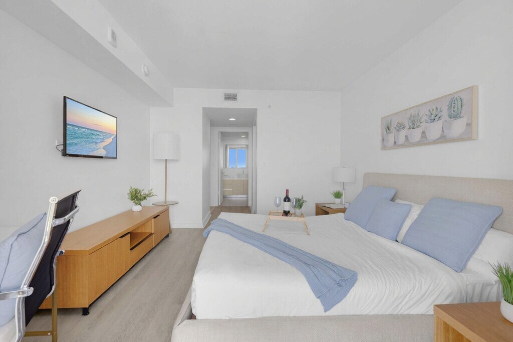 The advertised rate of $2,438/month is the lowest available price, based on a 30 day(s) stay with a move-in date of August 24, 2026. Rates vary depending on the duration of stay, season, and other parameters. For exact pricing and additional pricing components, please visit our website and enter your desired move-in and move-out dates. The rate is applicable when billed upfront; it can be higher if billed in multiple payments. Welcome to this spectacular upper-floor apartment located in the Beachwalk Resort, a brand-new condo in front of Hallandale Beach, just a few minutes' drive from Aventura Mall and Sunny Isles Beach. Feel at home in this 1-bedroom apartment with stunning views of the Atlantic Ocean, Intracoastal Waterway, and downtown skyline. This apartment features a full kitchen, 1 full bathroom, a private balcony, and an in-unit washer and dryer. The fully equipped kitchen offers a stainless steel refrigerator/freezer, a glass stove, an integrated oven, a silent dishwasher, an integrated microwave, a stove, dishes, a coffee maker, a hairdryer, an electronic safe, an iron and ironing board, and TVs in each room. A pack 'n play crib is available upon request. Package handling is available for $5 per package plus applicable taxes, and packages may be collected from the package room between 9 AM and 5 PM. Valet parking is available for 1 to 7 days at $28 per day per vehicle, plus taxes; 8 to 10 days at $25 per day per vehicle, plus taxes; 11 to 19 days at $250 per stay per vehicle, plus taxes; and 20 to 30 days at $295 per stay per vehicle, plus taxes. Located at the corner of Hallandale Beach Boulevard and the Intracoastal Waterway, this apartment is equidistant from Miami Beach to the south and Fort Lauderdale to the north. Enjoy easy access to the beach, fabulous nightlife, dining, shopping, and recreation. Just beyond the resort, you'll find the Hollywood Beach boardwalk and miles of Blue Wave-designated beaches. Surrounded by lots of restaurants and the world-famous Gulfstream Park, where you can dine, enjoy horse races, or try your luck at the casino. To the west, you can visit the famous Hard Rock Guitar Hotel & Casino, and it is the perfect location to be on the beach if you are attending an event at Hard Rock Stadium. To the south, you can continue to the renowned Aventura Mall, or head to South Beach for nightlife. To the north, you can enjoy more shopping and restaurants in Fort Lauderdale. The apartment is also minutes from Fort Lauderdale Airport. For groceries, you will find a 24-hour Walmart right next door and a Publix Supermarket a two-minute drive away. Beachwalk Resort imposes additional mandatory fees that are not included in the nightly rate. These fees are collected separately at check-in and are required to complete your reservation with the property. The resort fee is $30 per day, plus taxes, for stays of 1 to 7 nights; $25 per day, plus taxes, for stays of 8 to 14 nights; $20 per day, plus taxes, for stays of 15 to 29 nights; and $300 per month + $10 for each additional day, plus taxes, for stays of 30 nights or more. A $500 fine will be applied for any violation of the no-smoking policy. Please keep all doors closed and the air conditioning on at all times to help prevent condensation and property damage. Quiet hours are from 10:00 PM to 07:00 AM. Excessive noise or property damage may result in penalties. [SI]