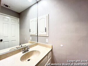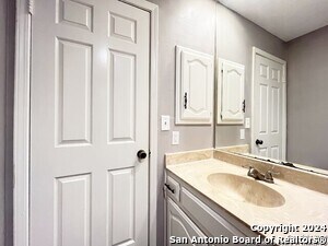 Spacious All Furnished Executive 1 bedroom condo located on second level, no carpet ,vinyl floor wood type, wood burning fireplace, the property has 4 pools , tennis courts, with open parking spaces, controlled access. The property is next to Phil Hardberger park, close of shopping centers , airport and restaurants, Centrally Located . Ask Broker for Short Term Rental Info.