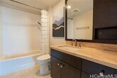 Step into sleek sophistication with Waihonua #2304 — a high-rise residence that balances condo living and convenience in the heart of Honolulu. This beautifully appointed unit features matte-finish walnut wood flooring, rich mahogany-stained cabinetry, elegant stone countertops, and top-of-the-line Bosch kitchen appliances. Custom window shades add comfort and privacy to the open, light-filled interior. Located just moments from Ala Moana Beach Park, Ala Moana Center, and the vibrant Ward Village, Waihonua offers unmatched access to shopping, dining, and outdoor recreation. Residents enjoy amenities, including an infinity-edge pool, spa, BBQ pavilions, club room with full kitchen, state-of-the-art fitness center, resident's movie theater, two guest suites, and surfboard and bike storage. Experience refined island living in one of Honolulu’s most sought-after condominium communities — welcome to Waihonua #2304.
