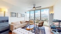 Welcome home to beautiful Waihonua! This fully furnished (except for a bed) 1 bdm, 1 bath contemporary condo offers city and mountain views in one of Honolulu’s most desirable locations. The unit features a modern kitchen with custom cabinetry, granite countertops, and stainless steel appliances. Hardwood flooring runs throughout the entry, kitchen, and living room, while the bedroom is carpeted. Additional features include a central air conditioning and a full-size stacked washer and dryer. One parking stall and a private storage cabinet are included. Enjoy resort-style amenities such as an infinity-edge pool, whirlpool spa, poolside cabanas, BBQ area, private movie theater, and a state-of-the-art fitness center. Fob access to the building entry, elevators and parking. Conveniently located near Ala Moana Shopping Center, Ala Moana Beach Park, and a variety of restaurants and entertainment options, this home provides the perfect balance of luxury and lifestyle. Water, sewer, basic cable, and internet are included in the rent. No pets and no smoking allowed. Minimum 1-year lease, good credit, solid rental references, and renter’s insurance required. $30 application fee per adult.