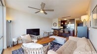 Available for Showing on 10/23. Unit access required for building project 10/30-11/20. Available for move in before or after. Welcome to your dream home in the heart of Honolulu, HI. This one-bedroom, one-bathroom residence offers a perfect blend of comfort and convenience. The home is equipped with a refrigerator, dishwasher, dryer, and an auto garage door opener for easy parking. The kitchen comes complete with a range/oven, microwave hood, disposal, and kitchenware, ready for your culinary adventures. The unit also includes a washer/dryer, making laundry day a breeze. The property boasts a central AC system and ceiling fans to keep you cool in the tropical climate. For your safety, the home is fitted with a smoke detector and blinds for privacy. Additional storage space is also available. The building offers a range of amenities including a concierge service, an exercise room, and a meeting room. A resident manager is on-site for your convenience. Enjoy breathtaking mountain and city views right from your home. Cable TV is included for your entertainment needs. This home is more than just a place to live, it's a lifestyle. Welcome to your new paradise in Honolulu. Utilities included: cable, internet, water, sewer, and refuse. Tenant responsible for electricity Rent is $3,200/month Security Deposit is $3,200 Renters Insurance REQUIRED! Emotional Support Animals welcome.... NO SMOKING Please contact Riley Bloom to schedule a showing: Riley Bloom RS-82422