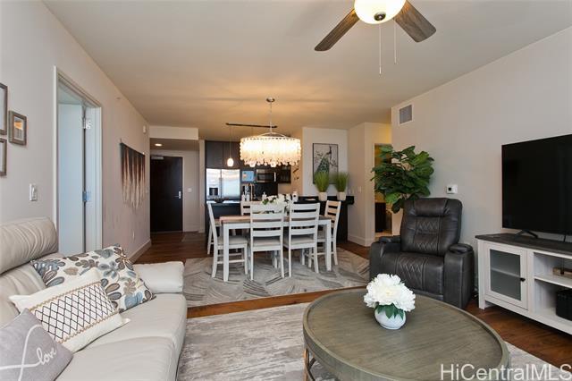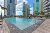 Stainless appliances, full sized stacked washer and dryer in spacious laundry closet. High quality engineered hardwood walnut floors, granite counter tops, and soft close cabinets. Enjoy luxury amenities including infinity pool, large jacuzzi, bbq cabanas, club room with full kitchen and tv, lounge room, gym, yoga room, and 2 guest suites. Secure building with controlled access and front desk security. Within minutes to Ala Moana, Ward Village, and Waikiki. HawaiianTel Cable and Internet included. Electricity NOT included. NO PETS & NO SMOKING Credit Check/Application Fee:$9 per adult/application non-refundable. Renters insurance required.