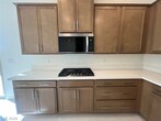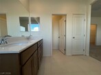 Never lived in! Welcome to this stunning brand-new home in the newest KB community of Summerlin West (Caldwell Park), Grand Park with views of Red Rock and the Las Vegas Strip.215 FWY to Far Hills W and you will see the New Grand Park Community that overlooks Red Rock ! 4 bedrooms and 3 bathrooms, loft and a convenient first-floor bedroom with a full bath. Enjoy an open-concept layout with tile flooring on entire first level, pantry, pot shelves, cooktop ,granite countertops, and a high-end appliance package with built-in double ovens and microwave. Ceiling fans are being installed with new turf in backyard. This home features 1 balcony in front off of loft. Owner's suite has a spa like bath with separate shower and tub . Ceiling fans just installed throughout the home .Water softener is included . EV plug in garage . Backyard is in the process of getting turf and pavers.