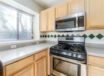 Quality wood flooring down, all stainless appliances: GAS range, French door refrigerator, built-in microwave, dishwasher. Dramatic black marble FP. Berber style carpet: stairs & bedrms. Recent hot water heater. Small private yard out back. Laundry closet with full sized W/D connections (elec & gas). Last phase of complex is 11 years newer than rest. Perfect roommate setup with same size bedrms(cathedral ceilings) each with private bath. Good closet space. MLS ID 9358157