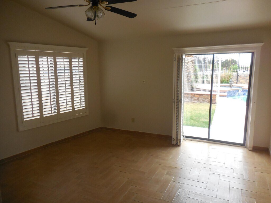 This exquisite 4-bedroom,2-bathroom located in East El Paso offers modern comforts. The open floor plan seamlessly connects the living,dining,and kitchen areas,creating an inviting space. Prepare to be enchanted by the gourmet kitchen,adorned with elegant granite countertops and appliances. Step outside into your own private oasis to a resort-style pool,perfect for cooling off on hot summer days. Parking is a breeze with the attached 2-car garage,providing secure storage for your vehicles and belongings. And with central air conditioning,you'll stay cool and comfortable year-round. Don't miss your chance to experience luxury living at its finest. Schedule a showing today and make this stunning rental property your new home sweet home! No Pets allowed. Tenants are responsible for pool maintenance and fees.