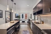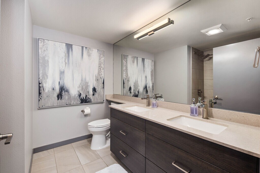 Live luxuriously in this FULLY FURNISHED 1-bedroom + den on the 5th floor, featuring smart lighting, a custom walk-in closet, and a flexible den for a home office or guest retreat. The open-concept kitchen boasts a quartz waterfall island, stainless steel appliances, and ample storage. In-unit washer/dryer and 1 premium parking stall included. Enjoy resort-style amenities: concierge, fitness center, club lounge, and rooftop deck with fire feature and BBQ. Minutes from The Village at Totem Lake, downtown Kirkland, top-rated schools, parks, dining, and shopping. $3,300/mo without utilities or $3,550/mo with utilities. Internet included. Minimum 3-month lease.