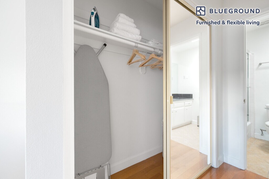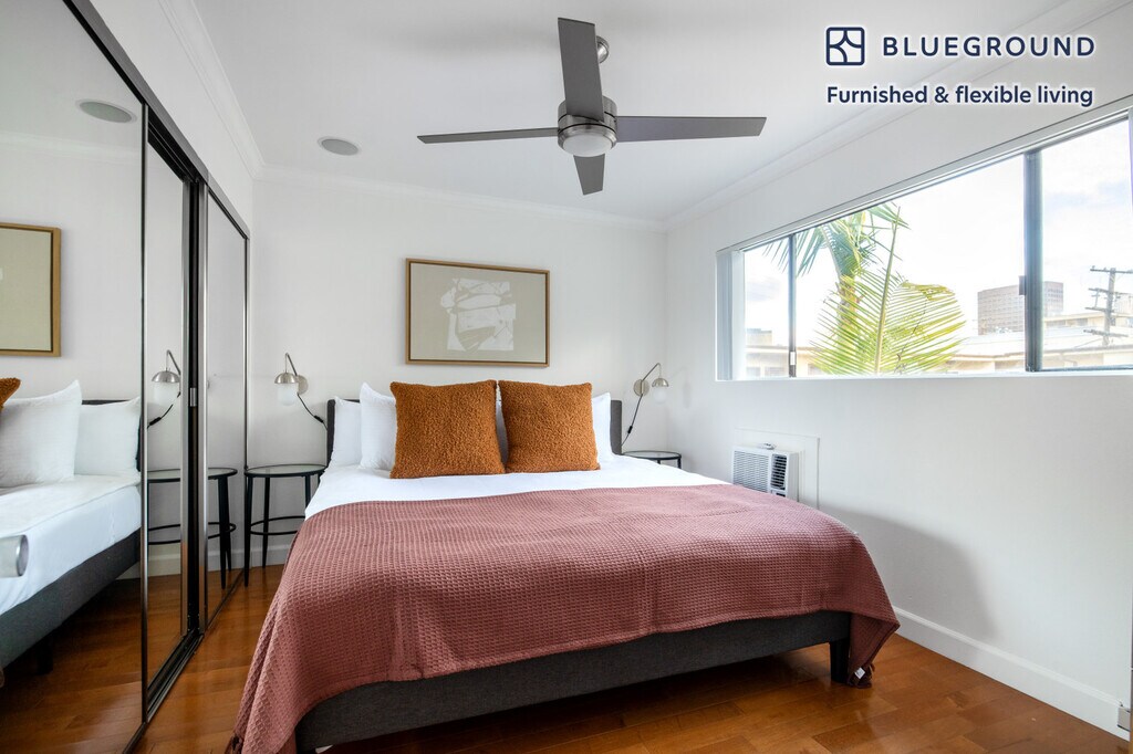 Discover the best of Los Angeles, with this two bedroom apartment in Brentwood. It’ll be easy to simply show up and start living in this furnished apartment with its fully equipped kitchen, living room, and our dedicated, on-the-ground support. (ID #LAX383) The advertised rate of $3,760/month is the lowest available price, based on a 1 month(s) and 29 day(s) stay with a move-in date of December 19, 2025. If you’re looking for a 1-year stay, the rate is $4,080/month. Rates vary depending on the duration of stay, season, and other parameters. For exact pricing and additional pricing components, please visit our website and enter your desired move-in and move-out dates. The rate is applicable when billed upfront; it can be higher if billed in multiple payments. Brokers are welcome to reach out. Were you looking for an unfurnished lease? Try Blueground instead and upgrade from unfurnished to furnished living: - Furnished at rates comparable to unfurnished - No setup or furniture costs - save thousands - Move-in ready - save time, just bring your suitcase Designed with you in mind Thoughtfully designed with bespoke finishes, modern furnishings, and a fully equipped kitchen, you’ll enjoy that “I’m home” feeling with this Blueground apartment. Whether you’re lounging in your stylish living room streaming the latest and greatest entertainment on the smart TV or premium wireless speaker, or getting some well-earned rest on the superior quality mattress with luxury linens, you’ll fall in love with everything this Brentwood apartment has to offer. This apartment also offers in-apartment laundry. Sleeping arrangements King Bed, 70.8in/180cm King Bed, 70.8in/180cm Amenities Building amenities unique to this two bedroom apartment include an on-site: - Dryer - Washing machine - Parking - Pets allowed Arrival and ongoing support The entire apartment is yours to enjoy! Throughout your stay, you’ll have access to our Client Experience team through the Blueground App. You can schedule additional cleanings, submit maintenance requests, and view our neighborhood recommendations with just a few taps. We’ll share all details upon confirmation of your stay. Ideally Located This furnished apartment is located in Brentwood, a small area on the Westside of Los Angeles. It is well-known for being one of the wealthiest in the county. The quiet neighborhood features tree-lined streets and impressive, upscale homes. San Vicente Boulevard is the main thoroughfare and is full of Italian eateries and cozy cafes. In addition, the Getty Center museum is also located in Brentwood and offers a world-class art collection that is ideal for culture lovers. Other things to note Building amenities may have an extra cost. This Blueground apartment has flexible lease options, allowing you to book it for one month, a year, or more. Pets are welcome, though weight limits and breed restrictions apply and may incur fees. Parking is offered based on availability and is subject to a fee. Please keep in mind that this is a walk up building. We take great pride in ensuring every photo displayed is shot in our own units with our actual furnishings. That said, we regularly refresh our decor and furniture arrangement, which may differ from what’s pictured. [SI]