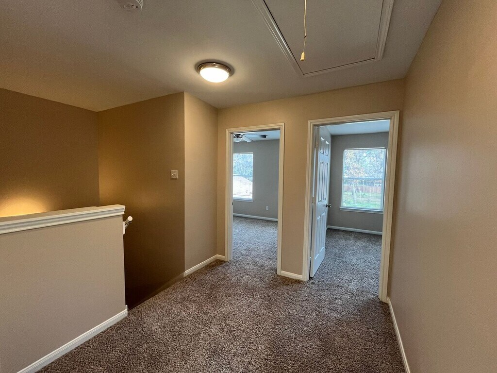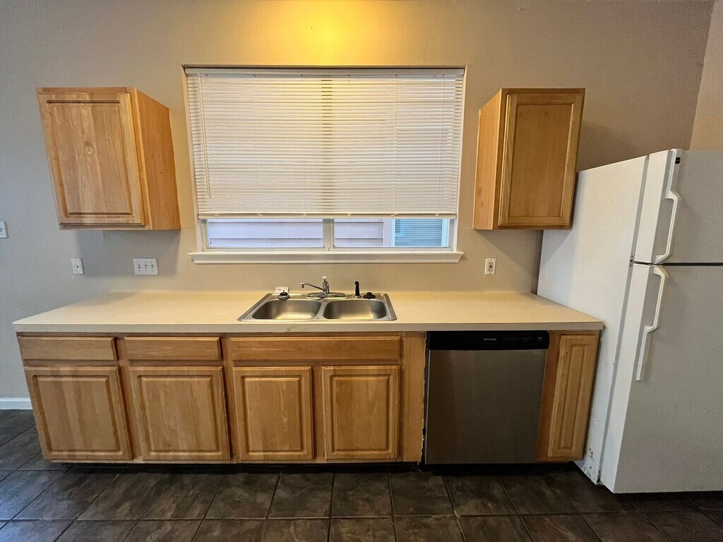Welcome to this two-story townhome. The open floor plan seamlessly connects the kitchen, dining, and living areas, creating a warm and functional space. The kitchen offers storage, dishwasher, and a refrigerator for added convenience. Upstairs, the primary suite features a private balcony and an ensuite bathroom with double sinks and a garden tub. Two additional bedrooms provide generous space, each with its own closet and large windows that fill the rooms with natural light. A second full bathroom serves the additional bedrooms and guests. Additional highlights include an attached garage for secure parking and extra storage, as well as washer and dryer connections for your convenience. *Online apps only, please submit all required documents at time of application** **$100,000 Liability to Landlord Insurance Policy Required**