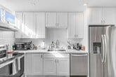 Fully renovated 3 bed + 2.5 bath Townhome style apartment. The unit is 2 story with nobody above or below you. Upstairs has a gorgeous master suite with private bathroom, big walk in closet, and private enclosed balcony. Also upstairs there is the other 2 bedrooms with plenty of light and big closets. Downstairs has a spacious living room that leads to your own private patio area and the kitchen has all new Whirlpool appliances. The rooms are big with lots of natural lighting. Brand new windows throughout and New Washer and dryer in unit. Smart home Recess lighting that can be controlled by your phone to be setup to turn on at certain times or with one touch have certain lights turn on just for movie time etc. Brand new Central air system with Cool and Heat throughout the entire unit! Controlled by nest thermostat. Never have to worry about hot or cold days. Washer and Dryer in Unit! Smart Home light controlled by Phone and remotes. 1 car covered parking and plenty of street parking in front.