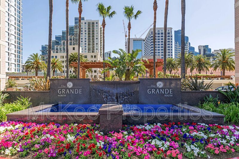 Seasonal Furnished Rental available April 1 - December 31, 2026. Welcome to The Grande South Unit 603 – A luxury 1 Bedroom / 1.5 Bath condo with hotel-inspired amenities. This stunning southeast-facing 6th-floor unit boasts breathtaking urban views of the city skyline and the historic Santa Fe Depot. The spacious open-concept floor plan offers a bright and airy living/dining area with beautiful hardwood floors and fresh designer paint. The spacious kitchen is a chef’s dream, featuring upgraded SS appliances and sleek countertops with bar seating. The entire home is furnished with modern furniture, creating an inviting, stylish atmosphere. Enjoy relaxing outdoors on the large covered terrace, complete with comfortable lounge chairs and sweeping city views. The unit also comes equipped with high-speed wireless internet, a large “smart” TV with access to popular streaming services like Netflix, Hulu, and YouTube. This fully furnished unit has everything you need for a comfortable, relaxing stay. It’s located just steps from vibrant Little Italy, Seaport Village, The Headquarters, and Rady’s Shell at Jacobs Park – offering unparalleled access to San Diego’s best attractions. Whether you’re in town for a corporate stay or seeking a seasonal retreat, this property offers the perfect base for enjoying all that San Diego has to offer. Please contact McKee Properties for availability and to set up a private tour . Property is leased fully furnished. No smoking of any substance inside or outside the premises. Utility cap and non-refundable cleaning fee apply. McKee Properties 1001 B Avenue, Ste 203 Coronado, CA 92118 CA DRE #00907967 Amenities: Gated Access, Fitness Center, Pet Friendly, Fully Furnished, BBQ Area, 1 Underground Parking Space, 24 Hour Concierge, Heated Swimming Pool & Spa, Community Room