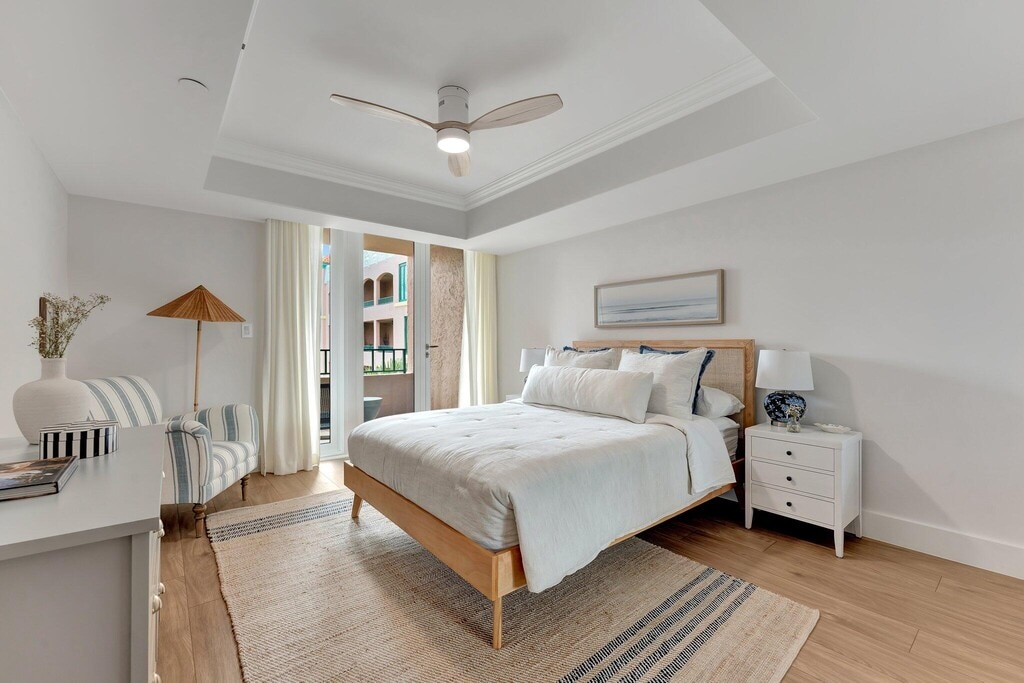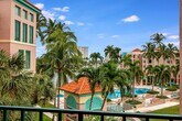 AMAZING INTRACOASTAL VIEWS! AVAILABLE 45 FT. BOAT SLIP No expense spared! Modern decor with incredible thought given to details of this reconfigured open floor plan...This stunning furnished/turn-key in the Mizner village / Boca Raton resort grounds in the center building of Mizner court! SLEEK KITCHEN and stunning Bathroom Cabinetry with tons of storage, self-close doors and drawers, led lighting, beverage center, dimmers everywhere... even on the backlit led lighting, Impact Windows, huge balconies and so much more! Waterfall quartz top 12 foot island with incredible storage, Gorgeous exterior renovation already finished 2025. This unit provides added convenance with security located on ground floor.(120 is only building that has this) Garage with car charging capability at no cost!