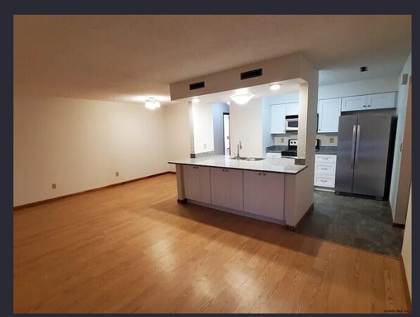 Property Id: 2299204 Well-maintained first floor condo in Knox Woods, Clifton Park (desirable Saratoga County) with open floor plan, 2 bedrooms, 1.25 baths and a recently renovated kitchen with granite countertops and stainless steel appliances. The primary bedroom includes a large walk-in closet, and the condo has hardwood laminate floors throughout. The living room and dining area open onto a private corner deck, which sits across from a green space. The condo includes an in-home washer and dryer and has gas heat, as well as central air conditioning. Located in the quiet nicely landscaped Knox Woods community, with two swimming pools, several tennis courts and easy access to Albany and downtown Saratoga Springs. No pets. No smoking. Immaculate condition. Condo fees, pool fees, parking, water, garbage and snow removal included. Utilities not included. Security deposit required. Credit and background check.