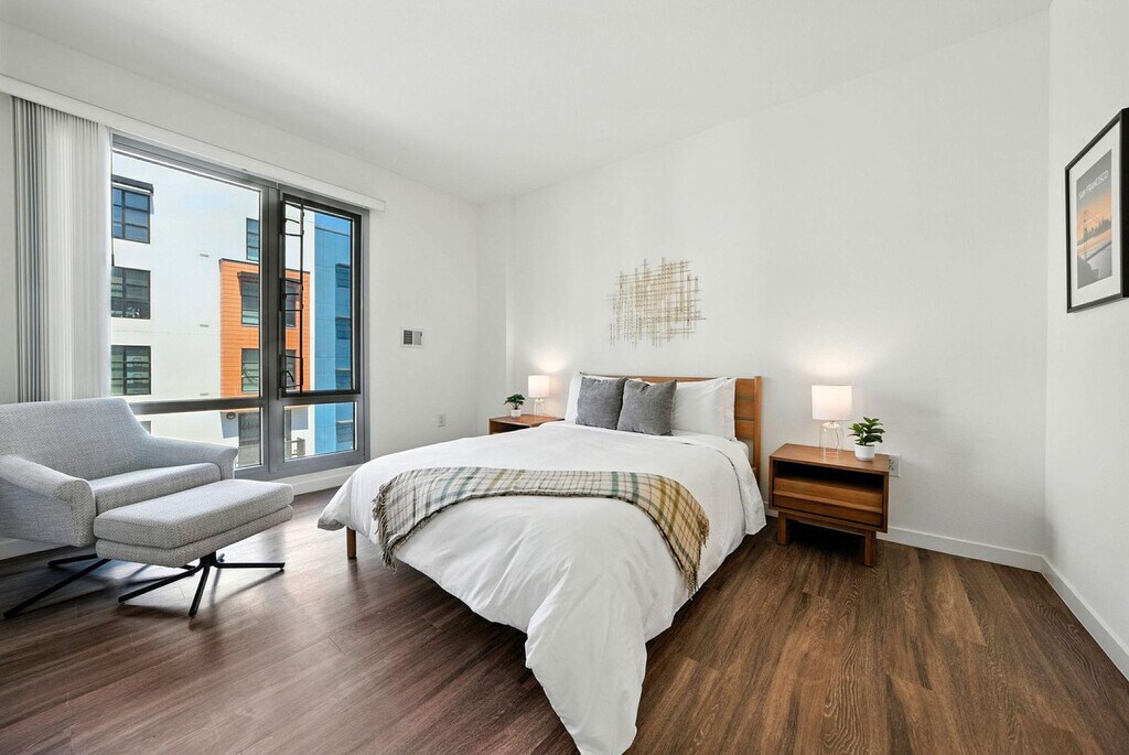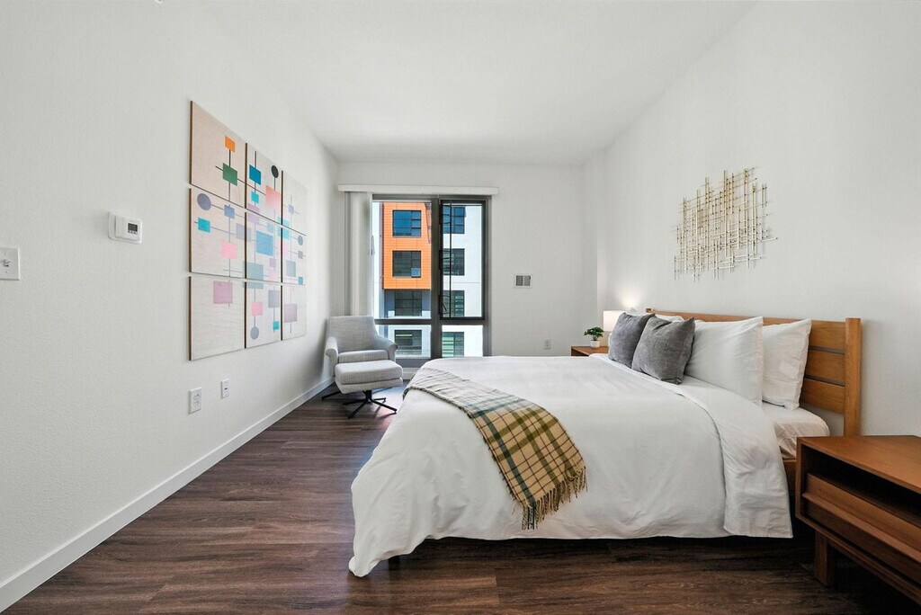 Experience modern luxury living in San Francisco’s Mission Bay at Strata. Perfectly situated near Oracle Park, Chase Center, UCSF, and the scenic waterfront, this apartment offers unmatched access to dining, shopping, and entertainment, plus seamless connectivity with Caltrain, Muni, I-280, and US-101. From sleek modern finishes to thoughtfully designed spaces, this fully furnished 1-bedroom apartment offers the perfect balance of comfort and productivity for today’s remote worker. It includes an open kitchen with granite countertops, stainless steel appliances, hardwood-style flooring, recessed lighting, and high ceilings, plus an in-unit washer/dryer for everyday convenience. Amenities include stainless steel appliances and granite countertops, hardwood-style flooring and upgraded Berber carpeting, nine-foot ceilings, vaulted ceilings (top levels) and recessed lighting, in-unit washer/dryer, fitness center with cardio, strength and free weights, business center, conference room and Wi-Fi in common areas, clubhouse with catering kitchen, resident lounge and billiards room, courtyard with outdoor seating, barbecue areas and bocce court, resident app for scheduling amenity spaces and online service requests, and reserved parking garage. Guest parking available — inquire for rates. Internet speeds are not guaranteed and may fluctuate based on your computer model and the router location. A laptop computer is not included in the home office set-up. Reserved parking is based on availability. Early check-in from 10am-3pm will incur a fee of $75 and early check-in before 10am will incur a fee of 1 full night's rent (based on selected dates). Late check-out from 11am-3pm will incur a fee of $75 and late check-out after 3pm will incur a fee of 1 full night's rent (based on selected dates). Late check-outs must be requested at least 48 hours in advance. Equipped with a dedicated home office set-up and private high-speed internet, you can work seamlessly from the comfort of home. Includes private high-speed internet, standing desk (Uplift), ergonomic work chair (Uplift), 34-inch ultra-wide monitor (Samsung), microphone (Blue Yeti), webcam (Logitech), computer speakers (Bose), LED streaming light, keyboard (Logitech), mouse (Logitech), laptop stand, and TOTU 16-in-1 Triple Display USB-C 3.1 Docking Station. [SI]