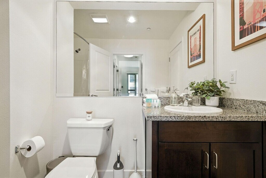 Experience modern luxury living and feel at home in this fully furnished 1-bedroom apartment at Strata in San Francisco’s Mission Bay. This home features an open kitchen with granite countertops and stainless steel appliances, hardwood-style flooring, recessed lighting, high ceilings, and an in-unit washer and dryer for everyday convenience. Enjoy access to a fitness center with cardio, strength, and free weights, a business center, a conference room, Wi-Fi in common areas, a clubhouse with a catering kitchen, a resident lounge, a billiards room, and a courtyard with outdoor seating, barbecue areas, and a bocce court. This unit also includes a private balcony, perfect for enjoying fresh air or a morning coffee. Reserved parking is available in the garage and guest parking is available; inquire for rates. Perfectly situated near Oracle Park, Chase Center, UCSF, and the scenic waterfront, Strata offers unmatched access to dining, shopping, and entertainment, plus seamless connectivity with Caltrain, Muni, I-280, and US-101. Internet speeds are not guaranteed and may fluctuate based on your computer model and the router location. Early check-in from 10 am-3 pm will incur a fee of $75. Early check-in before 10 am will incur a fee of 1 full night's rent (based on selected dates). Late check-out from 11 am-3 pm will incur a fee of $75. Late check-out after 3 pm will incur a fee of 1 full night's rent (based on selected dates). Late check-outs must be requested at least 48 hours in advance. A laptop computer is not included in the home office set-up. Includes private high-speed internet, a standing desk (Uplift), an ergonomic work chair (Uplift), a 34-inch ultra-wide monitor (Samsung), a microphone (Blue Yeti), a webcam (Logitech), computer speakers (Bose), an LED streaming light, a keyboard (Logitech), a mouse (Logitech), a laptop stand, and a TOTU 16-in-1 Triple Display USB-C 3.1 Docking Station. [SI]