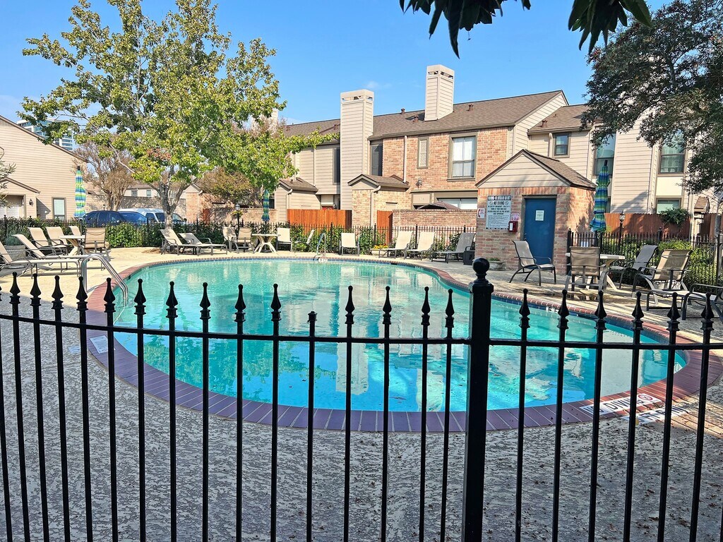 Move-in ready and stylish 2 bed,2.5 bath townhome with no carpet in a convenient location near shopping,dining,and Buffalo Bayou Park. Located in a guard station-gated and well-maintained community with a pool,this updated home offers a private outdoor patio,2-car garage,and an open-concept layout great for entertaining. On the 1st floor,the lovely dining area is open to the efficient kitchen with stainless steel appliances,and connects to the spacious living room with a fireplace and built-in shelves. 2 bedrooms,each with an ensuite bathroom and walk-in closet,are located on the 2nd floor,along with the laundry room. Enjoy a lock-and-leave lifestyle,fresh interior paint,modern finishes,generous closet space,excellent storage throughout,and quick access to Downtown,Med Center,and the Galleria. All per owner MLS# 27562257