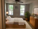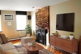 Welcome to 1204 Washington Ave #2S: Wake up to the morning sun in this large, updated one-bedroom condo on uptown Washington Street. The open-plan living and dining area showcases exposed brick, a decorative fireplace mantle, and recessed lighting. The renovated kitchen is equipped with task lighting, stainless steel appliances, quartz countertops, a marble breakfast bar, and a glass tile backsplash. The modern bathroom includes classic white subway tiles and a vanity with extra storage. The spacious bedroom faces the courtyard, ensuring both privacy and natural light that also features double closets with built-in storage. Additional amenities include ample closet space, Hard wood floors, free laundry, a private basement storage unit and a shared courtyard. Located on the desirable 1200 block of Washington $3200 1mth fee no pets