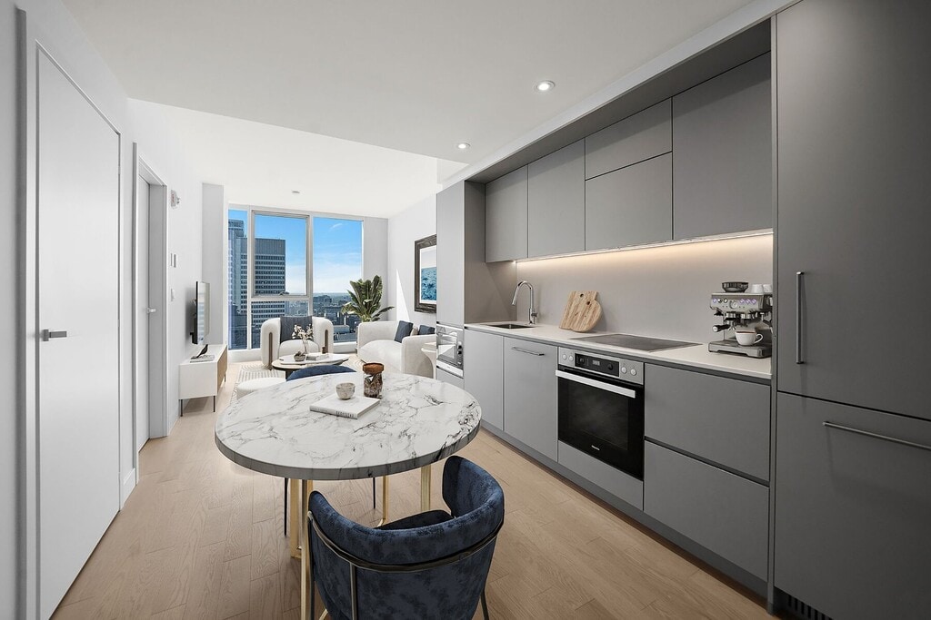 Located in the heart of downtown Montreal, 1205 Place Phillips offers luxury, comfort, and spectacular views. This unit on the 46th floor is bathed in natural light and features an elegant, functional layout. The building offers exceptional amenities including an indoor pool, two gyms, a yoga studio, panoramic terraces, and exclusive lounges, along with 24/7 concierge and security services. Just steps away from renowned restaurants, boutiques, and all the conveniences of city life.