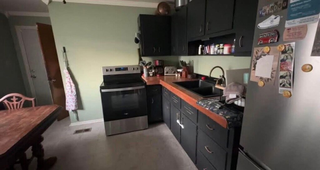 3 Beds 1 Bath - House Available in Late December/ Early January *Highlights* - 4.7 miles from Neyland Stadium - 3.2 miles from New Smokies Stadium - 3 miles from Old City - 2.1 miles from Knoxville Zoo - 2 miles from Holston Hills Country Club This 3-bedroom, 1-bathroom home offers 957 square feet of living space. The living room has a black accent wall with a large window. Master bedroom has dual closets and fits a king sized bed and dresser. Both guest rooms have a single closet and fit a full sized bed with dresser comfortably. The bathroom has the original 1960’s pink tile and has a bathtub. The kitchen has been updated with black cabinets and concrete countertops, with stainless steel appliances. Washer and dryer are included, and are in the full unfinished basement. The basement has a garage door, and has plenty of room for 1 car. The driveway comfortably fits 2 vehicles, and parking on the street is okay too. Yard is fully fenced in and there is a chicken coop in the backyard as well. Neighbors are all elderly, retired people and have been nothing but kind and quiet. Would make a great home for a small family or college students due to its proximity to UT. Pets accepted on case by case basis. Utilities and lawn care not included in rent. This rental is available for $2000 per month