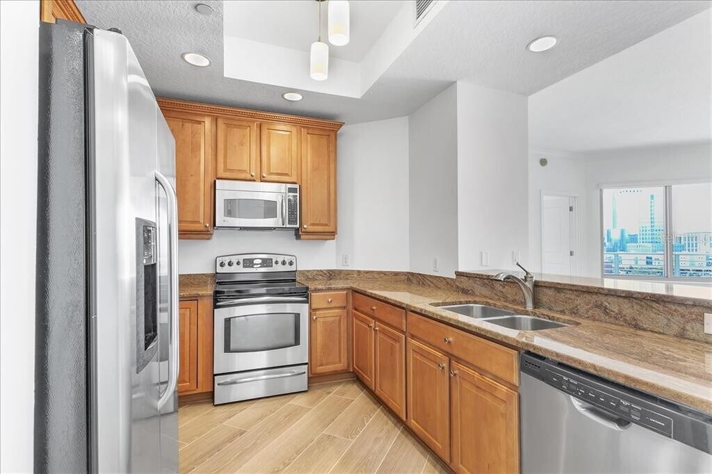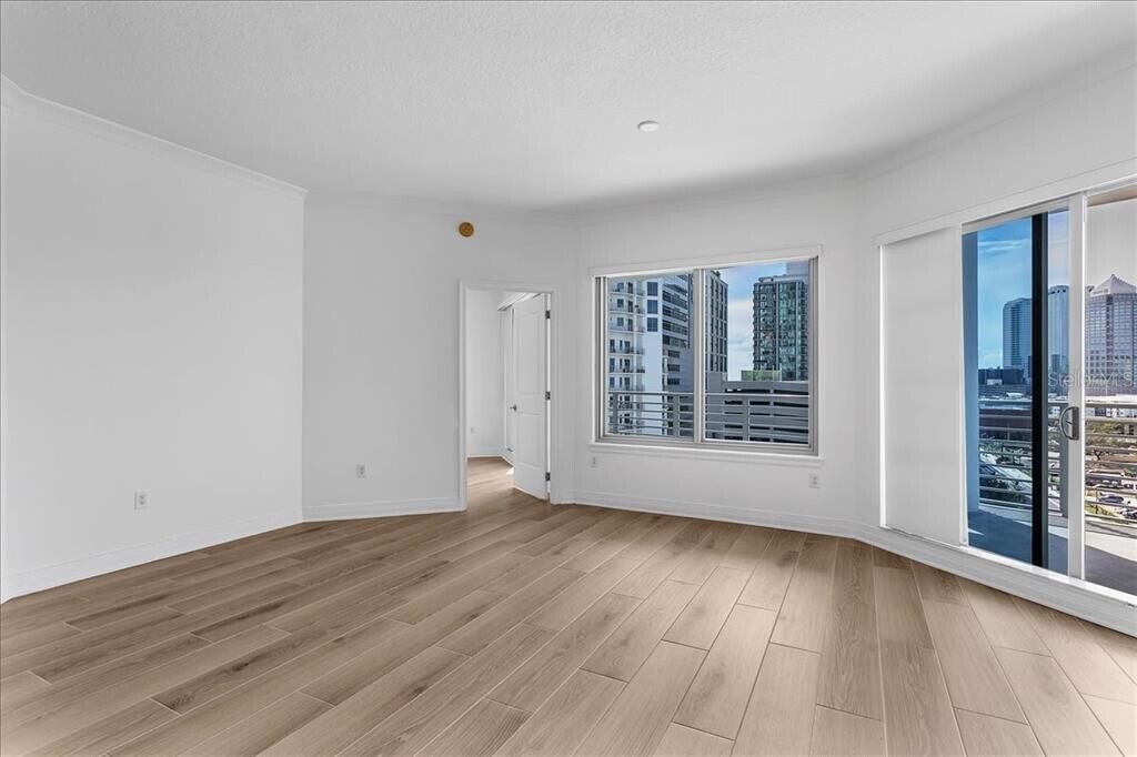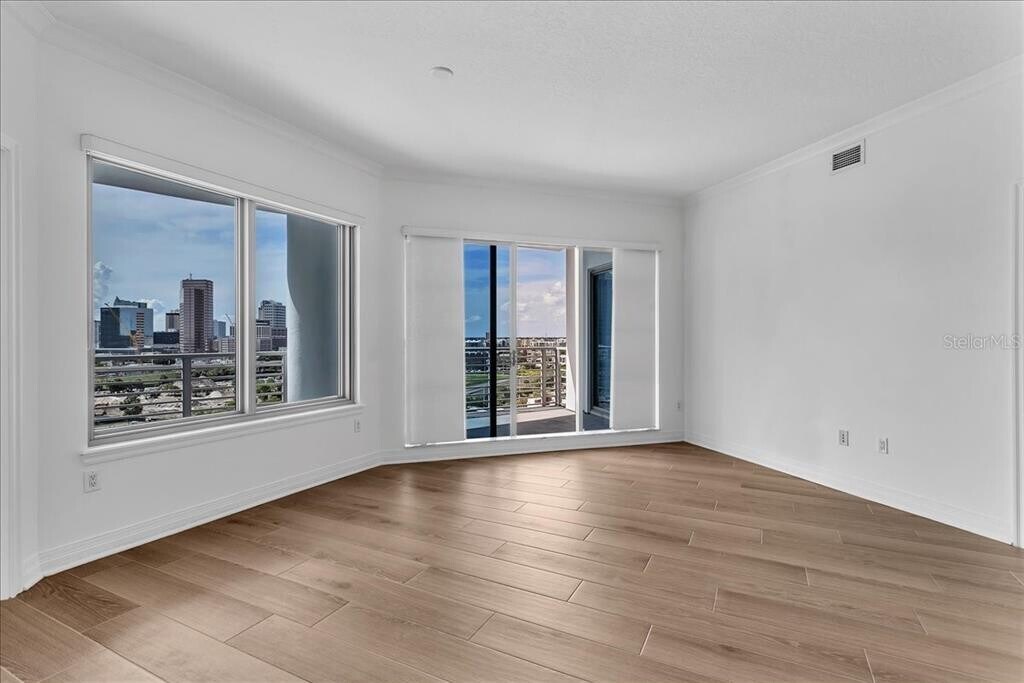 Jessica Beggins HoustonWake Up to Cruise Ships and Sunrises from Your 24th-Floor Channelside Sanctuary. Step through the front door and your eyes are immediately drawn straight through floor-to-ceiling glass to Tampa's glittering downtown skyline. This exceptional 3-bedroom, 3-bathroom residence at The Towers delivers 1,733 square feet of sophisticated waterfront living where every morning begins with a view. The sweeping wraparound balcony is your private observation deck to Tampa Bay life. Watch cruise ships glide into port, catch fiery sunsets over the water, and on crystal-clear days, spot the Hard Rock Casino shimmering in the distance. Each bedroom opens directly onto this expansive outdoor space through sliding glass doors, blurring the line between indoor comfort and outdoor panorama. Inside, the thoughtfully renovated interior showcases rich hardwood floors flowing through open living spaces, complemented by crisp white crown molding and designer light fixtures. The gourmet kitchen features pristine white cabinetry, granite countertops, mosaic tile backsplash, and stainless steel appliances. The split-bedroom floor plan ensures privacy, with two bedrooms boasting en-suite baths and the primary suite offering a spa-like updated bathroom and an oversized walk-in closet with custom built-ins. The Towers lifestyle extends far beyond your front door. The resort-style pool complex rivals any waterfront hotel, while the clubhouse, billiards room, and 24-hour concierge service create a true lock-and-leave environment. Your two assigned garage spaces sit steps from the elevator. Pet owners will appreciate the dedicated dog park and wash station. But location is the real luxury here. You're a 5-minute walk to Sparkman Wharf's waterfront dining and Amalie Arena's concert energy. Water Street Tampa's billion-dollar transformation has brought chef-driven restaurants, boutique fitness studios, and elevated retail right to your doorstep. The Riverwalk stretches along the bay for morning runs or sunset strolls, and downtown's business district is minutes away for professionals. Your HOA investment covers water, sewer, trash, and all amenities; it's simplified living at its finest. Built in 2007 and meticulously maintained by long-term owners who understood the value of quality updates, this residence represents the pinnacle of Channelside living for those who want walkable urban energy without sacrificing water views and modern comfort. Schedule your private showing today and discover why The Towers remains Channelside's most coveted address.