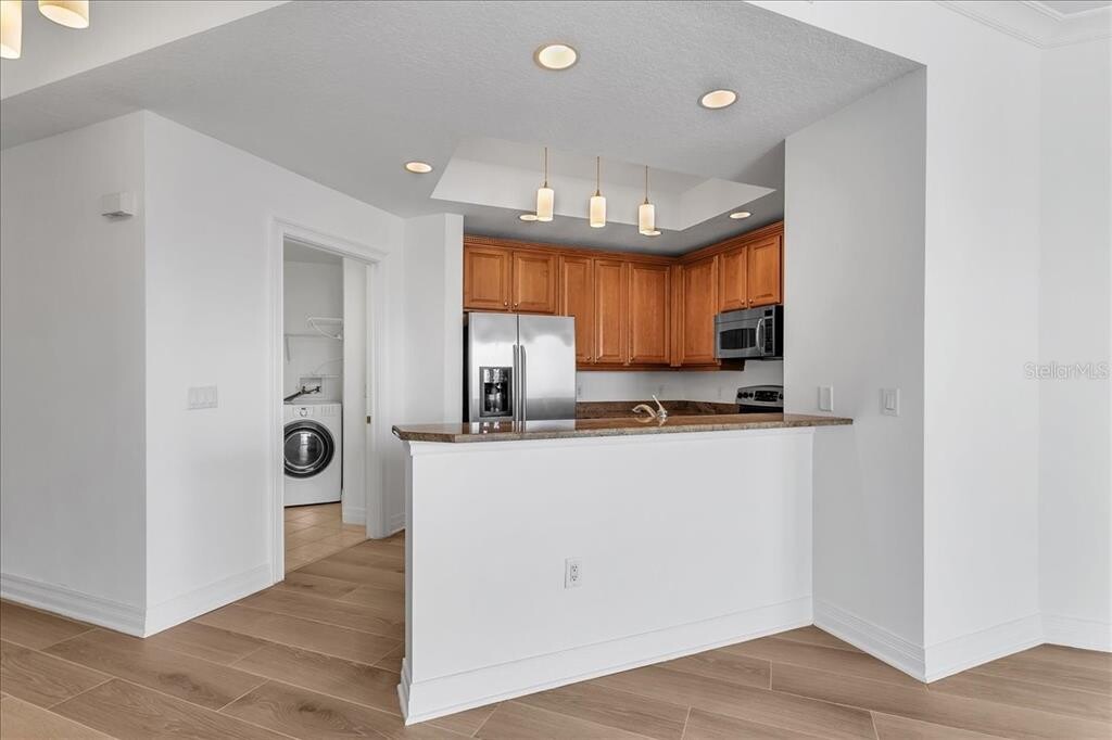 Welcome to elevated urban living in this beautifully updated 2-bedroom,2.5-bath residence on the 11th floor of The Towers of Channelside. Offering 1,363 sq. ft. of interior space and a wraparound balcony,this home delivers stunning views of Downtown Tampa and the resort-style infinity pool below. Step inside through double doors to an open,light-filled layout featuring brand new porcelain wood-look tile throughout and freshly painted walls and trim. The spacious living area flows onto the expansive terrace,accessible from both bedrooms and the main living space—perfect for entertaining or relaxing above the city. The kitchen boasts granite countertops,stainless steel appliances,and ample cabinetry,while both bedrooms include generous walk-in closets and en-suite bathrooms. The primary suite is a true retreat,with a garden tub,separate shower,and dual vanities. A full-size laundry room with washer and dryer adds everyday convenience. Additional highlights include two assigned parking spaces in a secured garage,24-hour manned security + concierge service,spacious clubhouse with pool table and indoor bar and catering kitchen,pool with hot tub and waterfall. Located just steps from Sparkman Wharf,Amalie Arena,the Florida Aquarium,Publix GreenWise,and the Tampa Riverwalk,this is downtown living at its best. Monthly rent includes water,sewer,trash,basic cable & internet,and 2 parking spaces. MLS# TB8436353