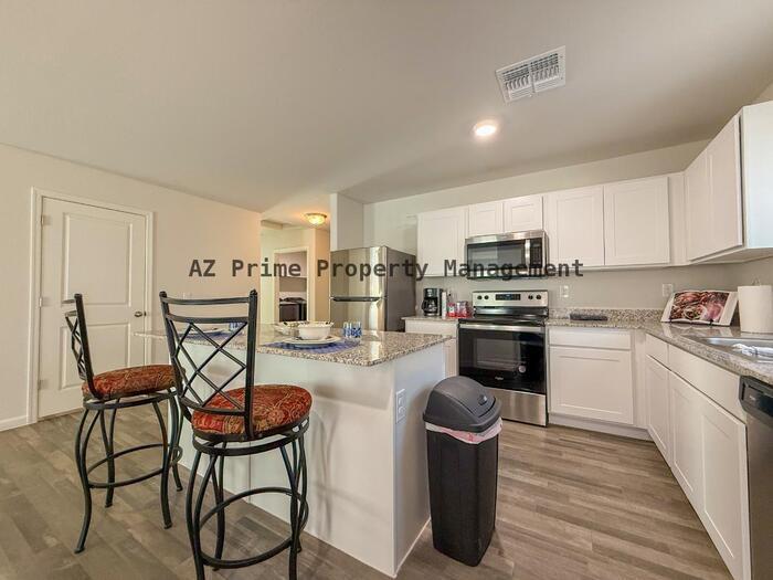 Imagine coming home to this stunning, new, partially furnished 4/2 gem in the highly sought-after Park Homes Community! The open great room flows effortlessly into a chef-ready kitchen with sleek granite countertops, gorgeous cabinets, and stainless-steel appliances. The primary suite offers dual vanities, a private bath, and a spacious walk-in closet for ultimate comfort. Perfect for entertaining or family living, the home also features a private patio, convenient laundry area, 2-car garage, and thoughtfully designed spaces throughout. With modern finishes, sun-filled rooms, and a friendly, vibrant neighborhood, this move-in ready home offers the perfect blend of style, comfort, and convenience you'll love to call your own! Visit for additional pictures, videos, rental lease terms, and how to view property in person! *The information contained in this ad is accurate to the best of our knowledge. AZ Prime Property Management is not responsible for any errors or omissions in the wording or content of this information* Federal Occupancy Guidelines followed: Max 2 per bedroom + 1 additional occupant; Max 2 per studio. Please get in touch with AZ Prime Property Management for available move-in dates. Our Rental Homes Reflected are Rented in the Current Conditions at the Time of Viewing. AZ Prime Property Management Equal Opportunity Housing License #LC665152000 Designated Broker: Bonnie Burns #BR109023000 -Online Applications are located at AZ Prime Property Management under the "Online Applications" tab. -Affordable Renter's Insurance Thru AssetProtect. AZ Prime Property Management does not advertise on Craigslist or Facebook.