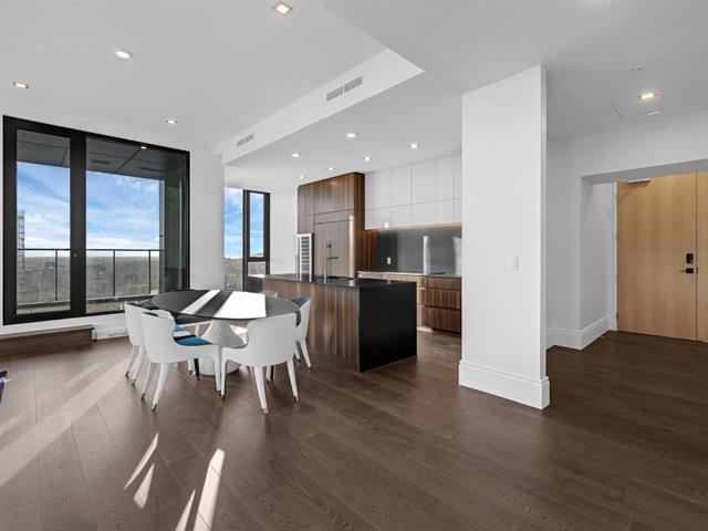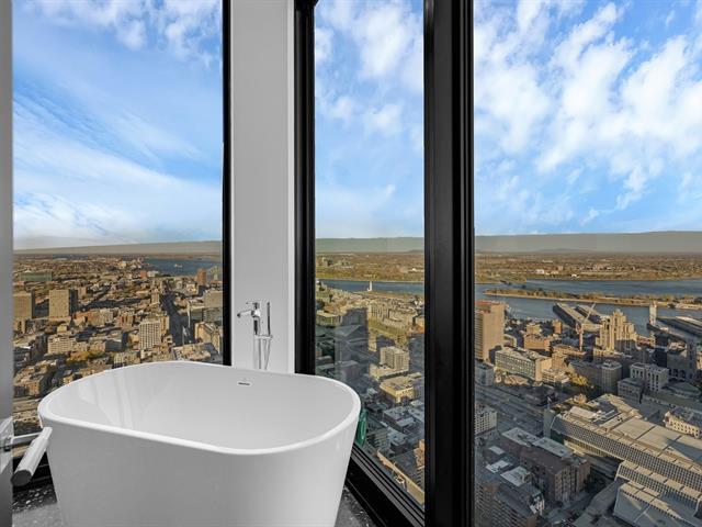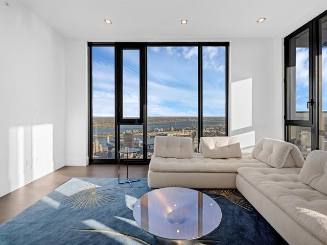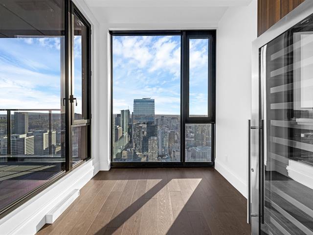 Experience unmatched urban luxury in this breathtaking Maestria penthouse, soaring above downtown Montréal on the 59th floor. This fully furnished 3-bedroom, 3-bathroom + 2-powder room residence features panoramic views of the city skyline and St. Lawrence River through floor-to-ceiling windows. Enjoy a large private terrace, designer interiors, and top-of-the-line finishes throughout. Located in the heart of the Quartier des Spectacles, you'll have direct access to Montréal's best restaurants, cultural venues, and shopping. Perfect for professionals or families seeking an exclusive, move-in-ready home. Unit Features: 3 bedrooms, 3 bathrooms + 2 powder rooms 1,577 sq. ft. Private terrace Central A/C Air exchanger Alarm system Furniture: Fully furnished with Roche Bobois furniture, dining table for six, queen beds, and custom solid-wood doors and wardrobes in each bedroom. Locker: Included Balcony: Yes — large private terrace (8.11' × 20.3') Parking: 1 indoor parking space included Appliances: Sub-Zero fridge & freezer, wine cellar, Wolf stove & oven, Bosch dishwasher, washer & dryer Utilities: Hot water included; tenant pays electricity, heating, internet, and cable Building Features: Bicycle storage Roof terrace Outdoor pool Hot tub / Spa Sauna Fitness room Common areas and co-working spaces Cinema and sky lounges 24-hour security Additional Information: No pets allowed Tenant insurance required Send us an inquiry for more information or to schedule a visit! MAESTRIA is a stunning architectural icon in downtown Montreal, seamlessly linking two luxury towers with a dramatic Skybridge—the highest residential skybridge in Canada. Blending art, culture, and urban living, it offers breathtaking views of Place des Arts and the city skyline. This is where bold design meets Montréal's vibrant soul.
