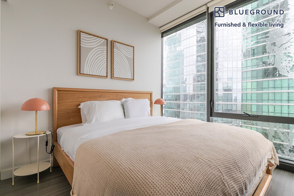 Feel at home wherever you choose to live with Blueground. You’ll love this beautiful Central Station furnished two bedroom apartment with its modern decor, fully equipped kitchen, and pretty living room. Ideally located, you’re close to all the best that Chicago has to offer! (ID #CHI1299) The advertised rate of $5,099/month is the lowest available price, based on a 12 month(s) stay with a move-in date of May 15, 2026. Rates vary depending on the duration of stay, season, and other parameters. For exact pricing and additional pricing components, please visit our website and enter your desired move-in and move-out dates. The rate is applicable when billed upfront; it can be higher if billed in multiple payments. Brokers are welcome to reach out. Were you looking for an unfurnished lease? Try Blueground instead and upgrade from unfurnished to furnished living: - Furnished at rates comparable to unfurnished - No setup or furniture costs - save thousands - Move-in ready - save time, just bring your suitcase Designed with you in mind Gorgeous furniture, fully equipped kitchen, smart TV, and a premium wireless speaker are just a few of the amenities you’ll find inside this two bedroom apartment. Ideally located in Chicago, you’ll find a lot to love outside as well. When you’re ready to relax, you’ll be happy to discover every Blueground bedroom comes with superior quality mattresses, fully stocked linens, and cozy towels. We handle everything so you can simply show up and start living. This apartment also offers in-apartment laundry. Sleeping arrangements King Bed, 70.8in/180cm King Bed, 70.8in/180cm Amenities Building amenities unique to this two bedroom apartment include an on-site: - Basketball Court - BBQ Area - Doorman - Dryer - Elevator - Game room - Swimming pool - Washing machine - Lounge - Pets allowed - Playroom - Sauna - Squash court Arrival and ongoing support The entire apartment is yours to enjoy! Throughout your stay, you’ll have access to our Client Experience team through the Blueground App. You can schedule additional cleanings, submit maintenance requests, and view our neighborhood recommendations with just a few taps. We’ll share all details upon confirmation of your stay. Other things to note Building amenities may have an extra cost. This Blueground apartment has flexible lease options, allowing you to book it for one month, a year, or more. Pets are welcome, though weight limits and breed restrictions apply and may incur fees. We take great pride in ensuring every photo displayed is shot in our own units with our actual furnishings. That said, we regularly refresh our decor and furniture arrangement, which may differ from what’s pictured. [SI]