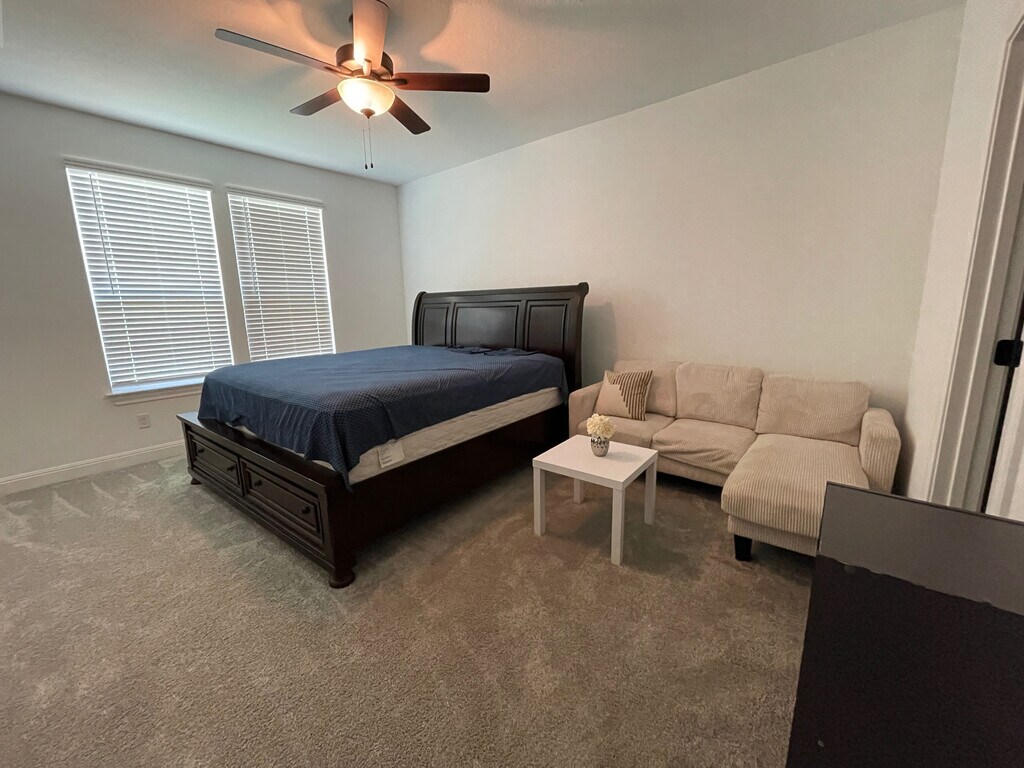 Room for rent: Brand new 5 bed 4 full bath house which is located in Manor. All bed rooms furnished with queen bed and master bedroom furnished with king bed *Bedroom furnishing not removable Note: Do not visit this property without first contacting us to schedule a tour at the number below.