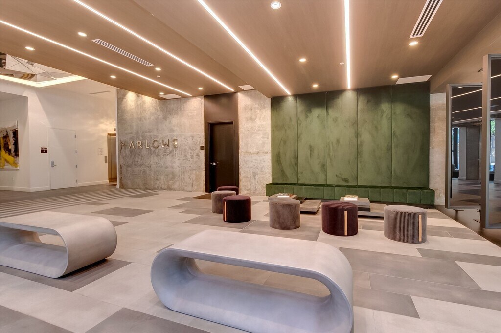 Experience luxury high-rise living at The Marlowe,ideally located in the heart of Downtown Houston. Just steps from the Toyota Center,Discovery Green,House of Blues,and more! This 2-bedroom,2.5-bath condo features soaring 10-foot ceilings,rich hardwood floors,and floor-to-ceiling windows framing spectacular city views. The chef’s island kitchen is outfitted with sleek Pedini cabinetry,Bosch appliances,and a Bertazzoni gas range,which is perfect for elevated everyday living and entertaining. Both spacious bedrooms feature en-suite baths with upscale finishes,offering private retreats of comfort and style. Relax on your private balcony or enjoy the building’s top-tier amenities: 24/7 concierge,valet parking,Starlight Pool & hot tub,steam room,sauna,massage room,and state-of-the-art fitness center. The Marlowe,named in homage to Frank Sinatra,is where modern elegance meets urban energy. Welcome home! MLS# 38952182