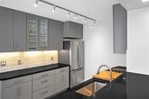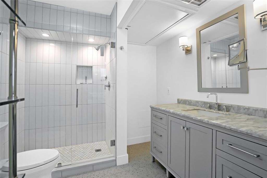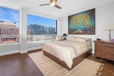 Completely renovated in 2020, this modern 2-bedroom, 2-bathroom residence is located just two blocks from the Texas State Capitol. Designed with clean, contemporary finishes, the home features large south-facing windows with custom blackout roller shades, white oak hardwood floors, solid core doors, and flat white paint for a sleek, minimalist aesthetic. The kitchen is outfitted with soft-close, full wood cabinetry, GE appliances, quartz countertops, torched oak floating shelves, LED lighting, and a spacious granite sink. Both bathrooms offer floating vanities and walk-in showers equipped with Kojox rain shower systems. Additional upgrades include St. Tropez European-style toilets and fully built-out California Closets with black oak shelving and cabinetry. This property is available fully furnished with flexible lease terms as short as three months.